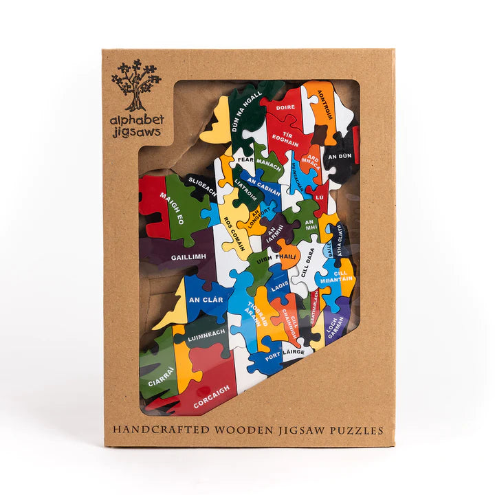 This is our New Map of Ireland County Colours Jigsaw Puzzle (As Gaeilge). Not the snappiest of names perhaps but there's a lot to it!
