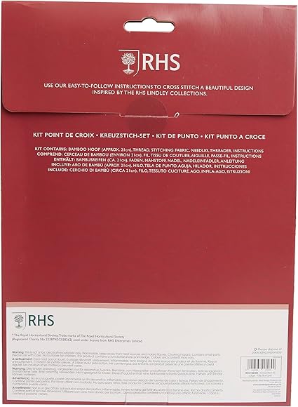 Set includes a bamboo hoop (approx. 21 cms) needle & thread, fabric and threader