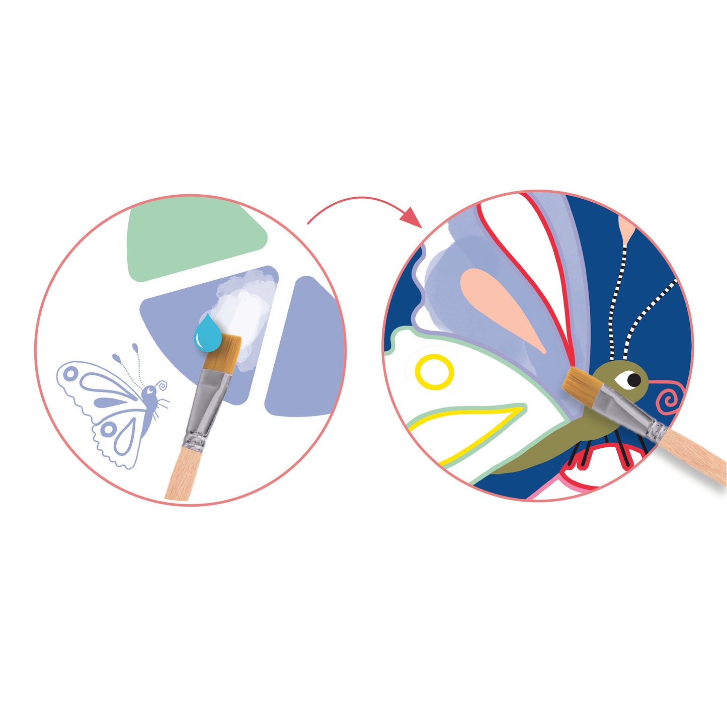 Little artists can discover paint in a fun and age-appropriate way. With palettes printed directly onto the sheets, they can paint ‘like grown-ups’, without the need for cumbersome or messy equipment. Everything has been thought out to provide children with a fun and practical activity that will build their confidence!