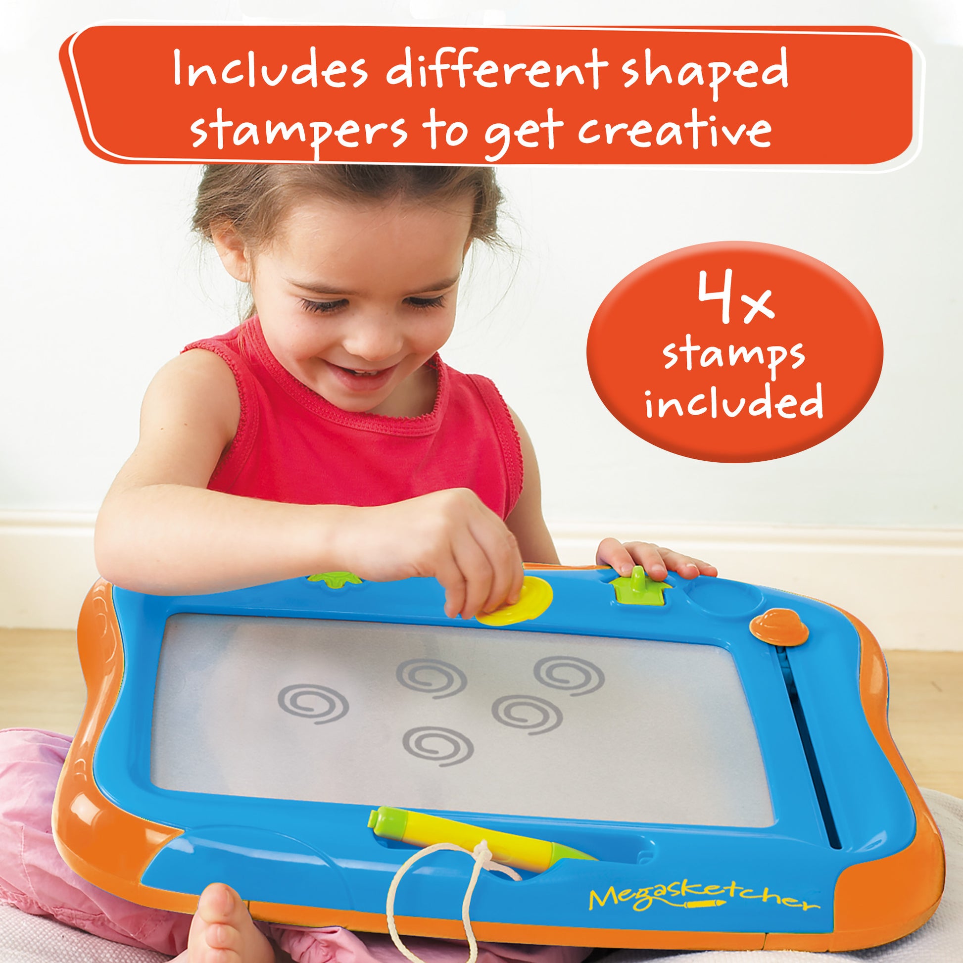 Children love to draw, and the Megasketcher from Tomy is a fun, clean, and tidy variation on the traditional pencils and paper. The Megasketcher measures roughly 45 x 30 cm (18 x 12 inches), with the magnetised 'screen' taking up most of the surface area. A magic 'pen' (attached by a piece of string to avoid losing it under the sofa) allows children to draw, scribble, and write, while the four magnetised stamps add a different dimension to youngsters' designs. Once a composition is complete, or if one too many mistakes have been made, simply pull the eraser lever up and down and it wipes away the redundant drawings.