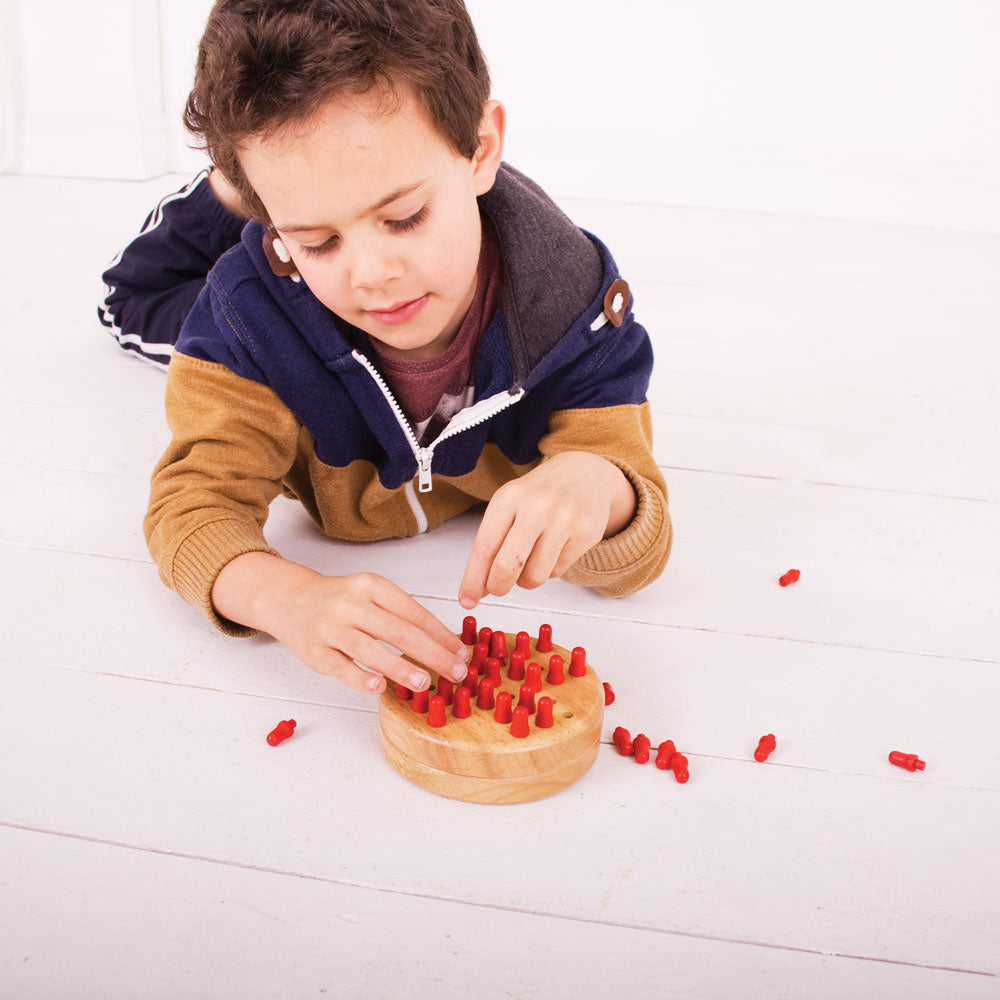 - With its bright red playing pieces and beautifully crafted wooden case, this Mini Solitaire set is a timeless gift for youngsters.