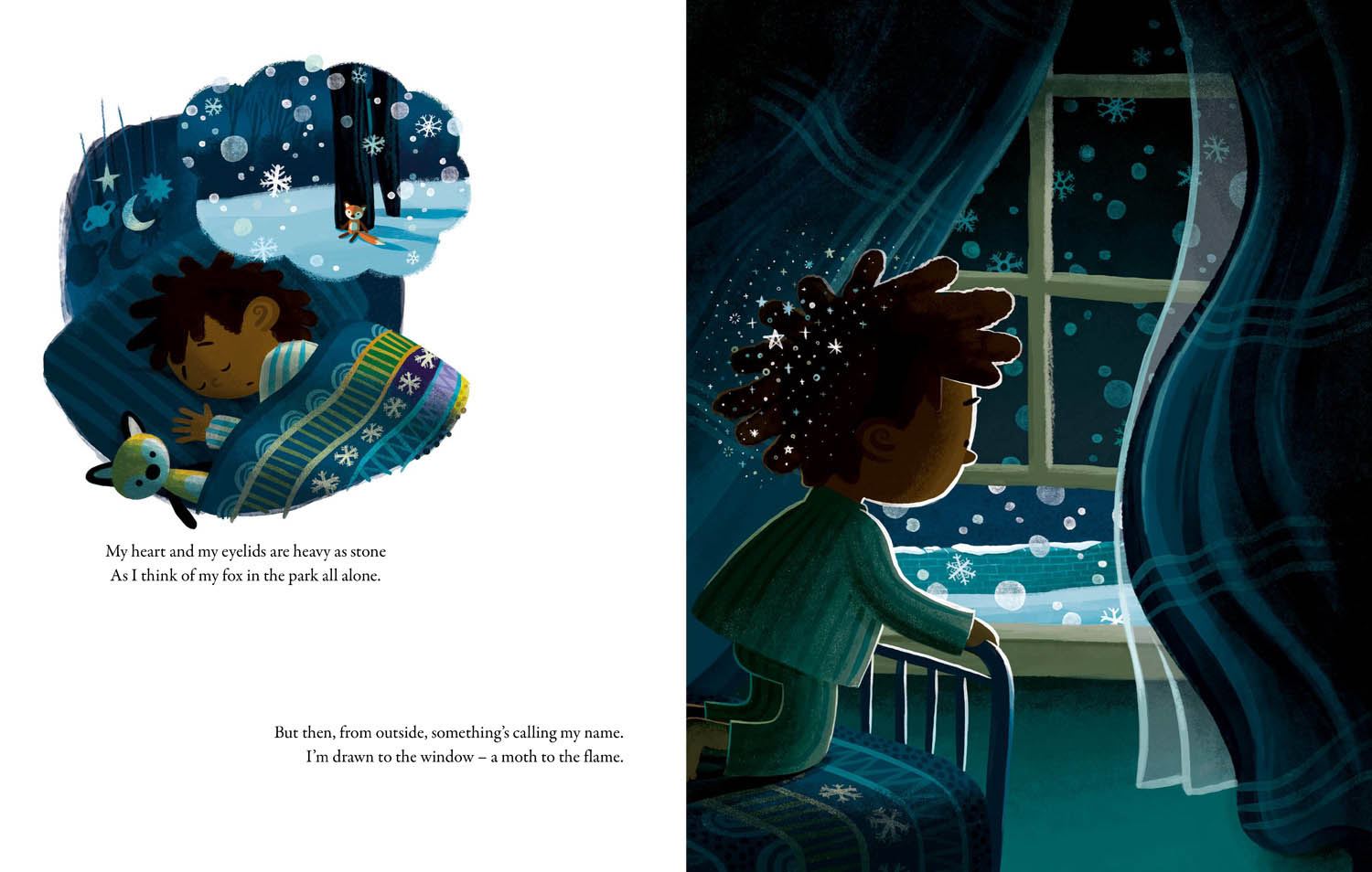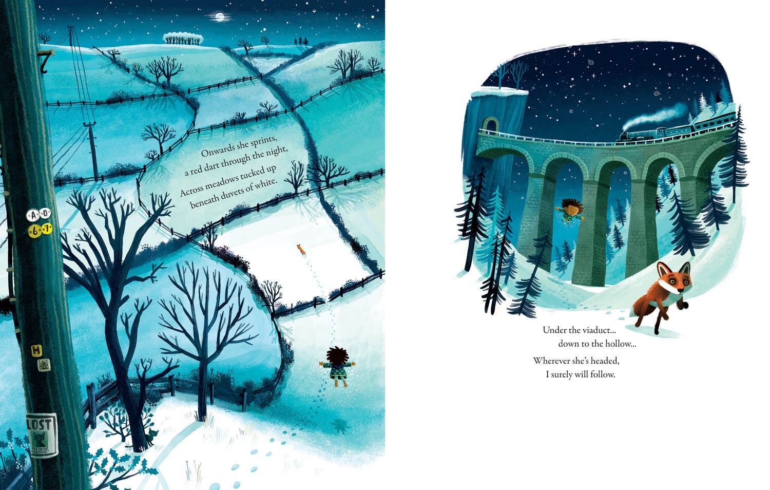 Little Fox (a soft toy) has gone missing in the park. The family search high and low, but Little Fox can’t be found. Then, one night, a real fox comes calling at the window, and the young boy decides to follow her. They go on a magical winter journey: moving through the city, past snowy meadows and icy rivers, until the boy realises the fox has led him to something special, and that she needs his help. By the creator of Gigantic, Blown Away, and Draw With Rob.