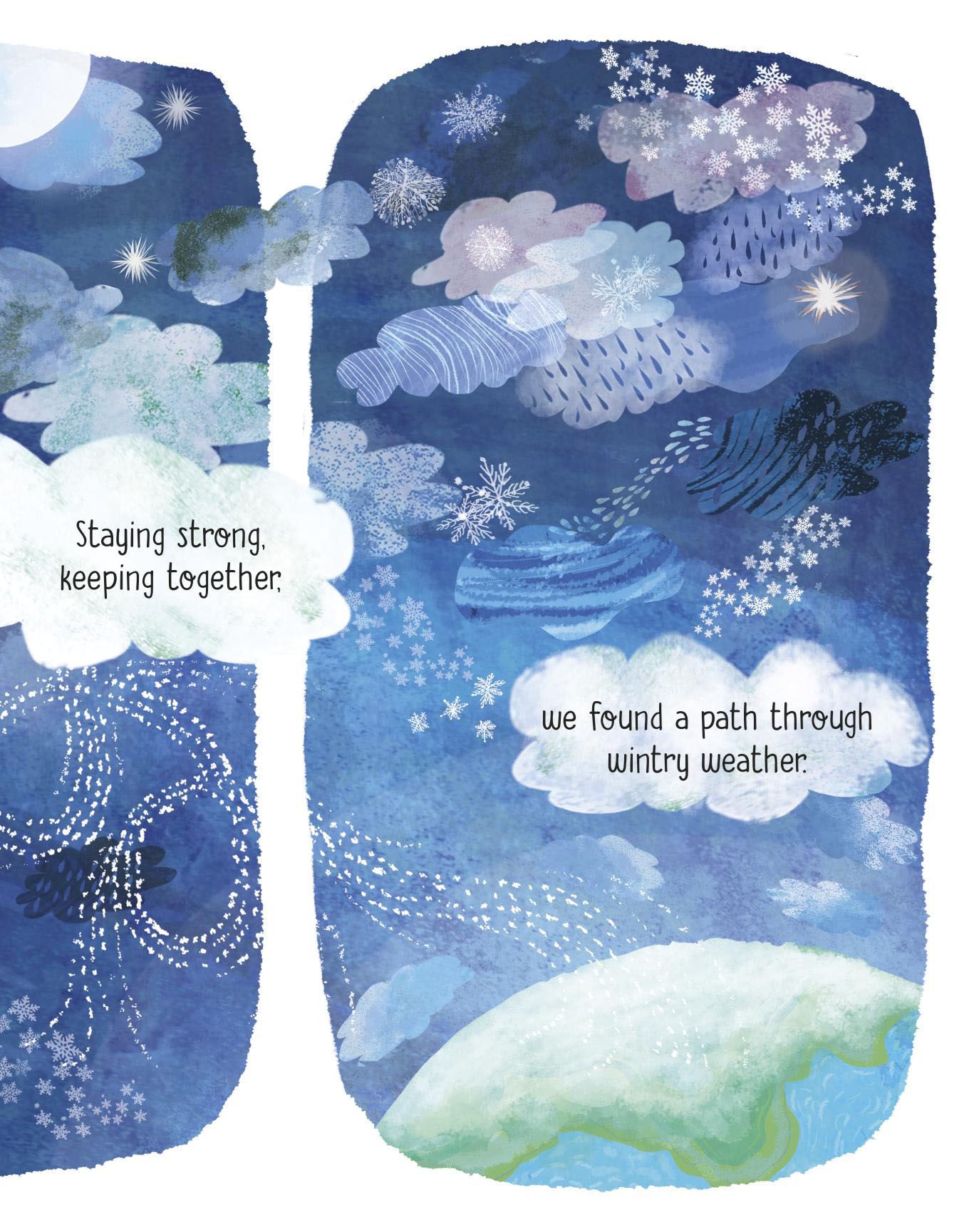 In this wonderfully festive picture book, Yuval Zommer imagines the Northern Lights' fleeting journey from space to Earth and how they weave a special magic for the animals and people living in the frozen lands below. With poetic rhyming text and evocative illustrations it deftly mixes the science behind how the lights are formed with cultural significance and fable, showing how, from tiny specks of dust to gleaming rays in the dark, the Northern Lights travel across the Arctic, uniting every creature in a celebration that reverberates through land and sea.