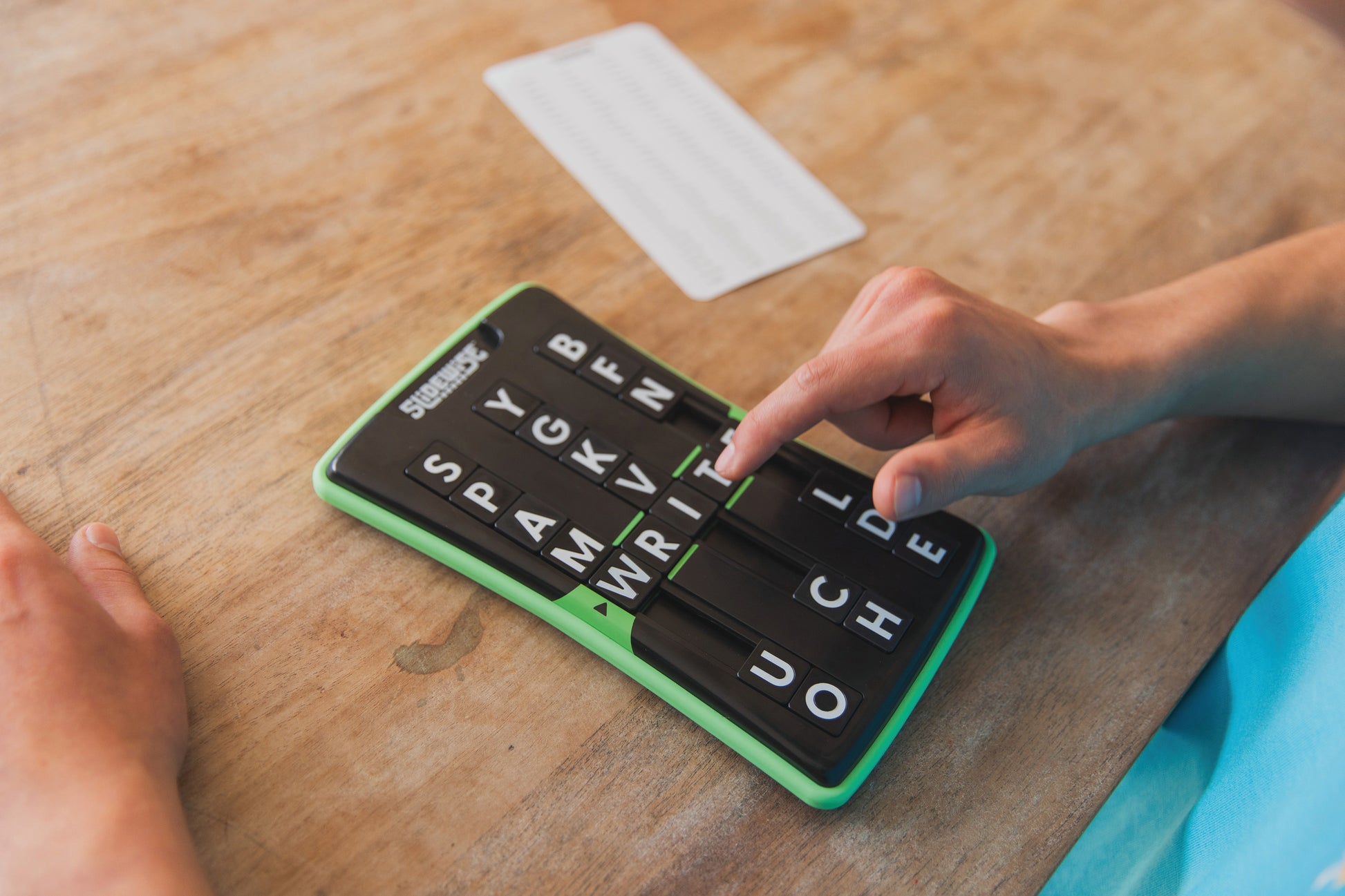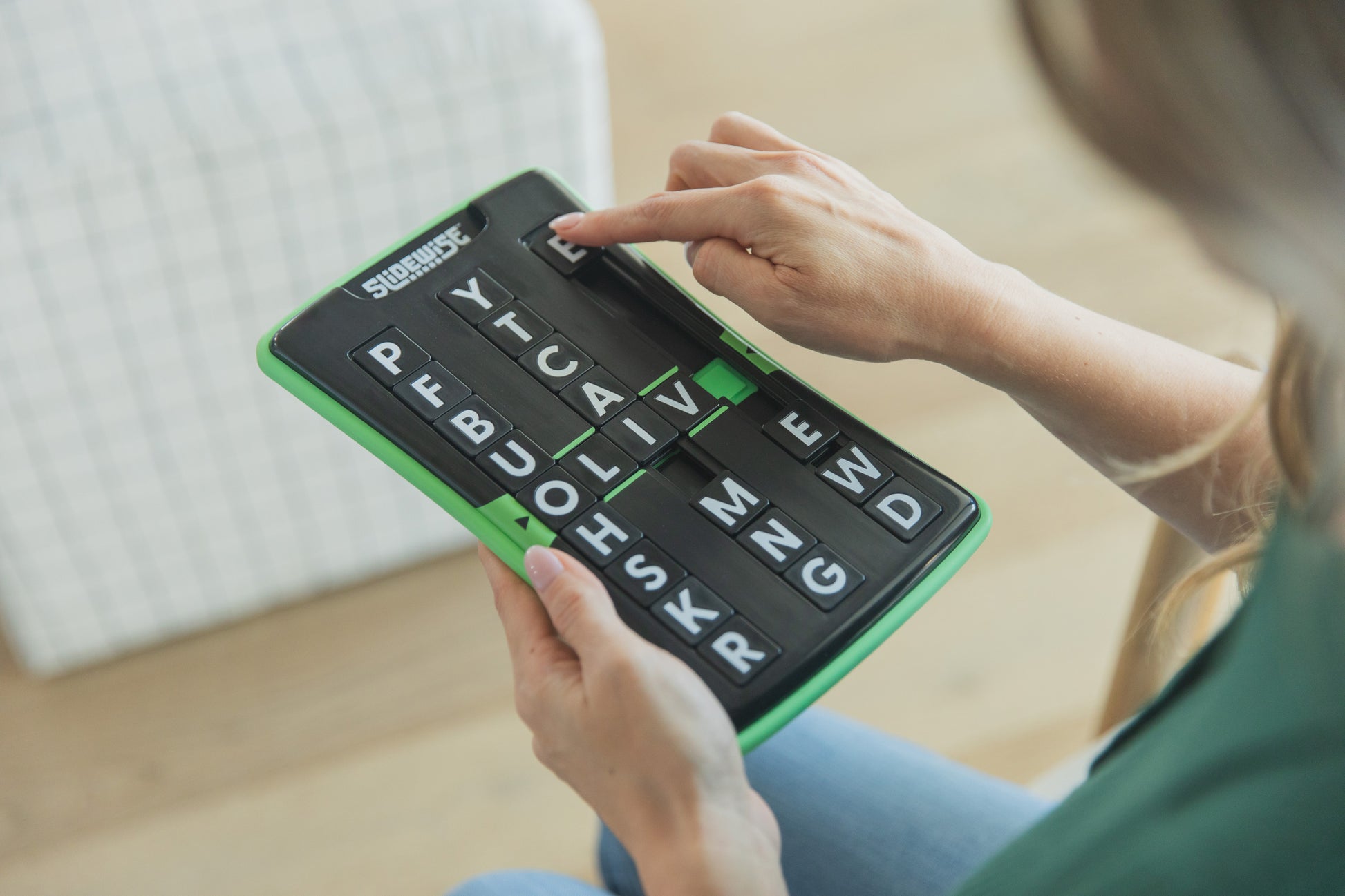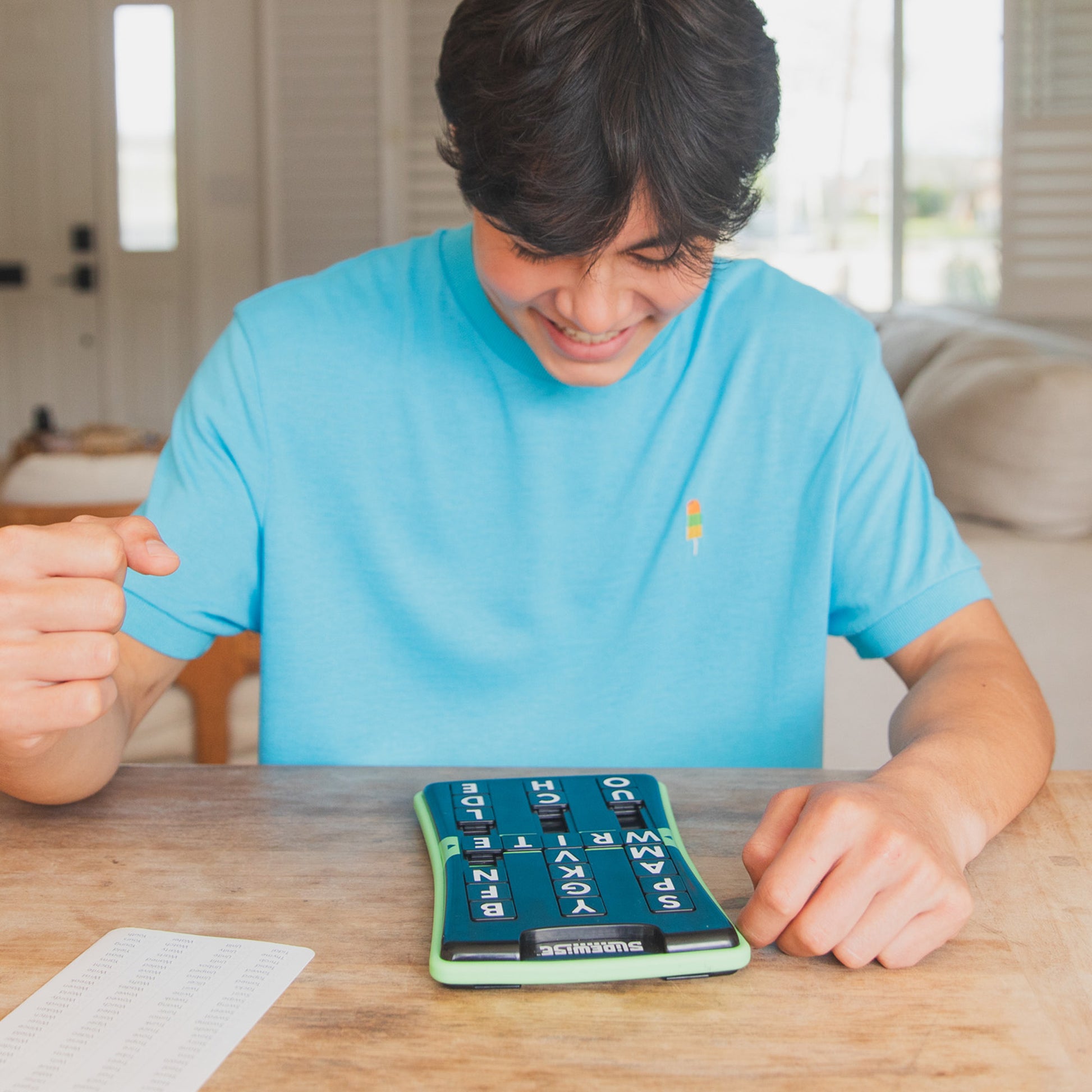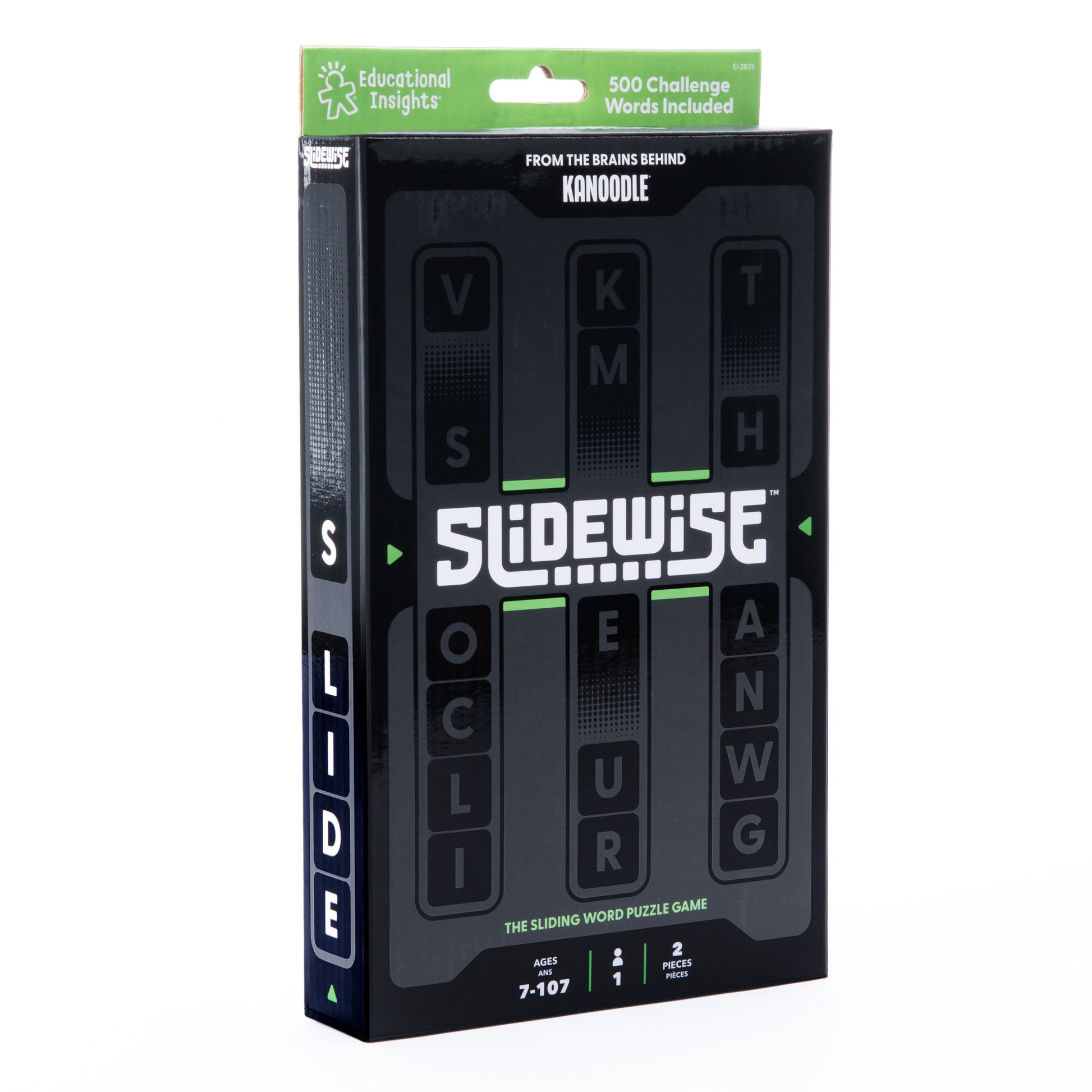 Learning Resources® Slidewise™ Word Slide Puzzle Put your brain to the test and build spelling skills at the same time with Slidewise™. Choose a five-letter word from the guide. Then slide the letter tiles horizontally and vertically to spell out the word in the green row in the centre of the game board. Challenge yourself to see how fast you can spell or try to spell the word in as few moves as possible. The satisfying sliding tiles make this brainteaser fidget-friendly and soothing. The challenge cards slide into the back of the game, making this ideal for solitaire play in the classroom, at home or on the go. Includes slide puzzle base with built-in sliding letter tiles and guide with 500 English words.