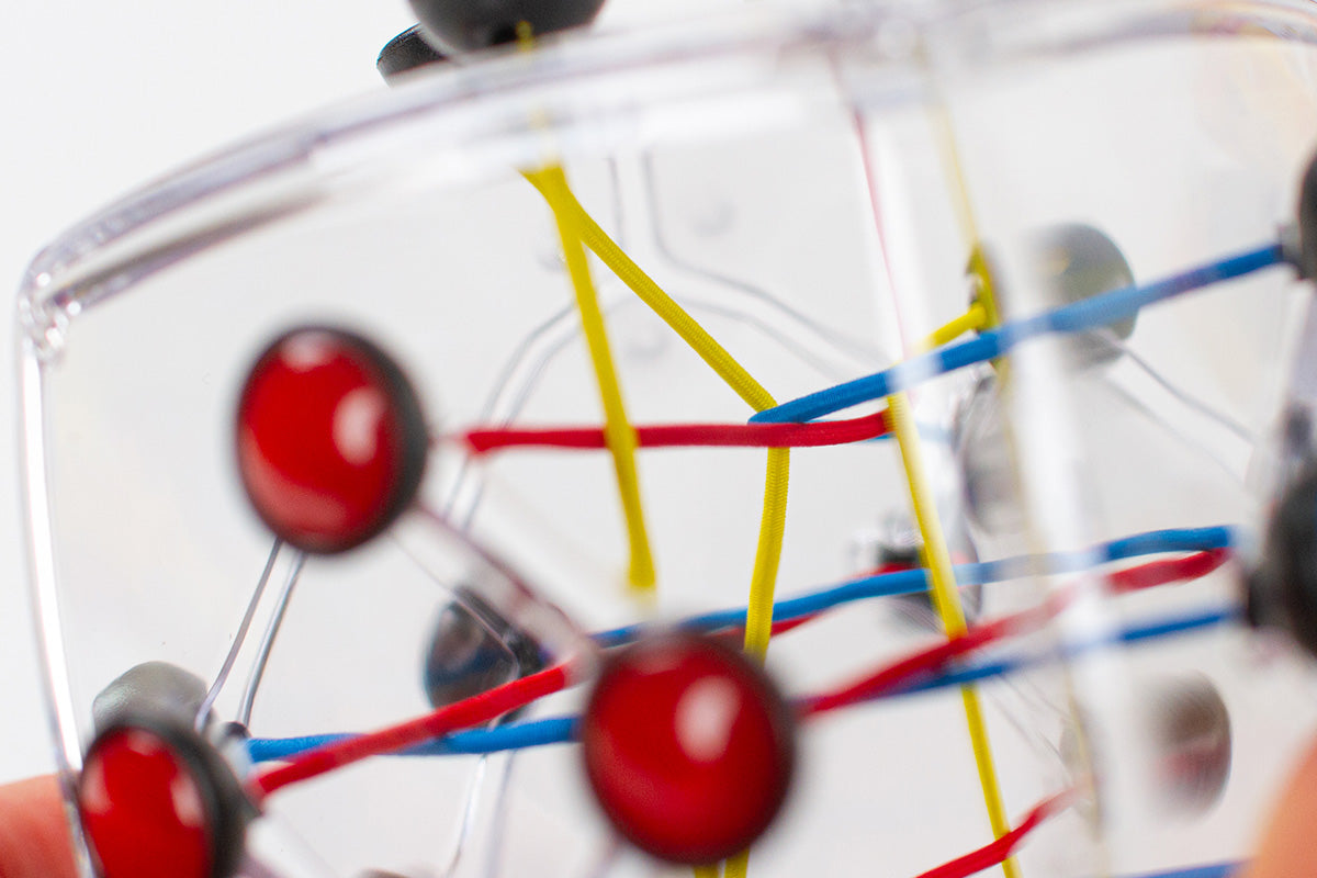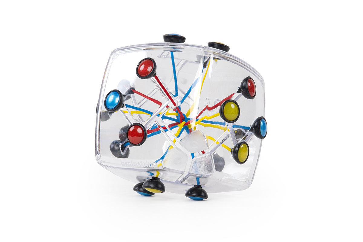 The mystery of Brainstring Original isn’t just how to untie a twisted ‘knot’ of strings in the centre, but how it can be that all its strings can be interchanged— WITHOUT creating a knot! Four groups of different coloured strings, four strings per group, moving up, down and around all six sides of a polycarbonate shell… beyond just tying or untying a knot, what kind of beautiful symmetries can you create? Brainstring Original isn’t just a puzzle — it’s a work of art.