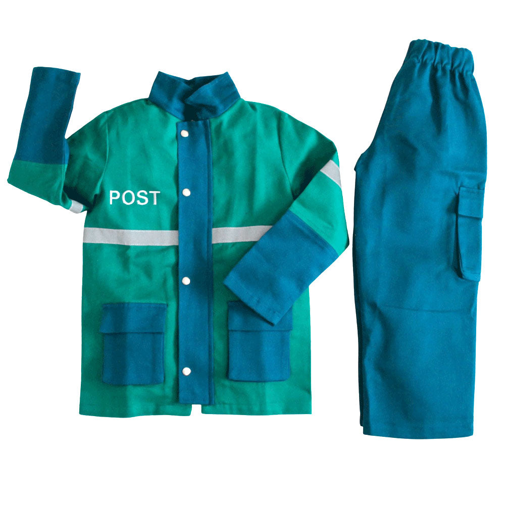 Each of our costumes are made with heavy weight, 100% cotton twill, and this authentic postal uniform includes: