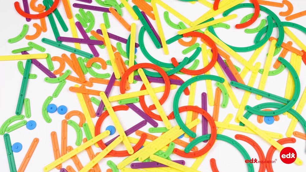 - 10 different shapes and lengths of flexible sticks that snap together.