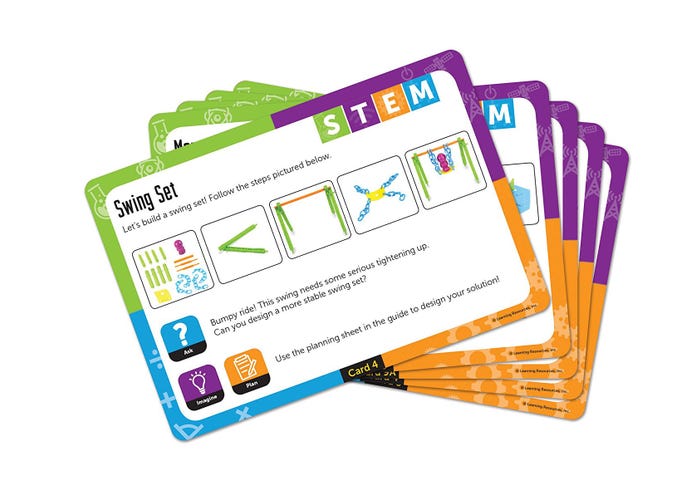 Specifically designed to engage children in science, technology, engineering and maths, this colourful engineering and design activity set allows primary learners to get hands-on with STEM learning! Children use the included challenge cards to create playground designs while developing their problem solving skills through practical engineering and design investigations. Includes over 50 playground pieces, two playground pals and ten challenge cards. Multilingual activity guide includes reproducible materials such as planning sheets, the Engineering and Design Process diagram and steps and sample questions to ask young learners as create their playground. Suitable for ages 5+