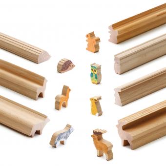 DIY individualists will dote on this easy-to-handle wooden craft-moulding kit. Apart from stimulating creativity, these strips also encourage handcrafting skills, entailing as they do measuring-out, sawing and sanding assignments. We recommend a minimum thickness of 1 cm to be maintained so as to ensure that the figures stand up properly and are well designed. Between 30 and 40 figures can be created from one strip.