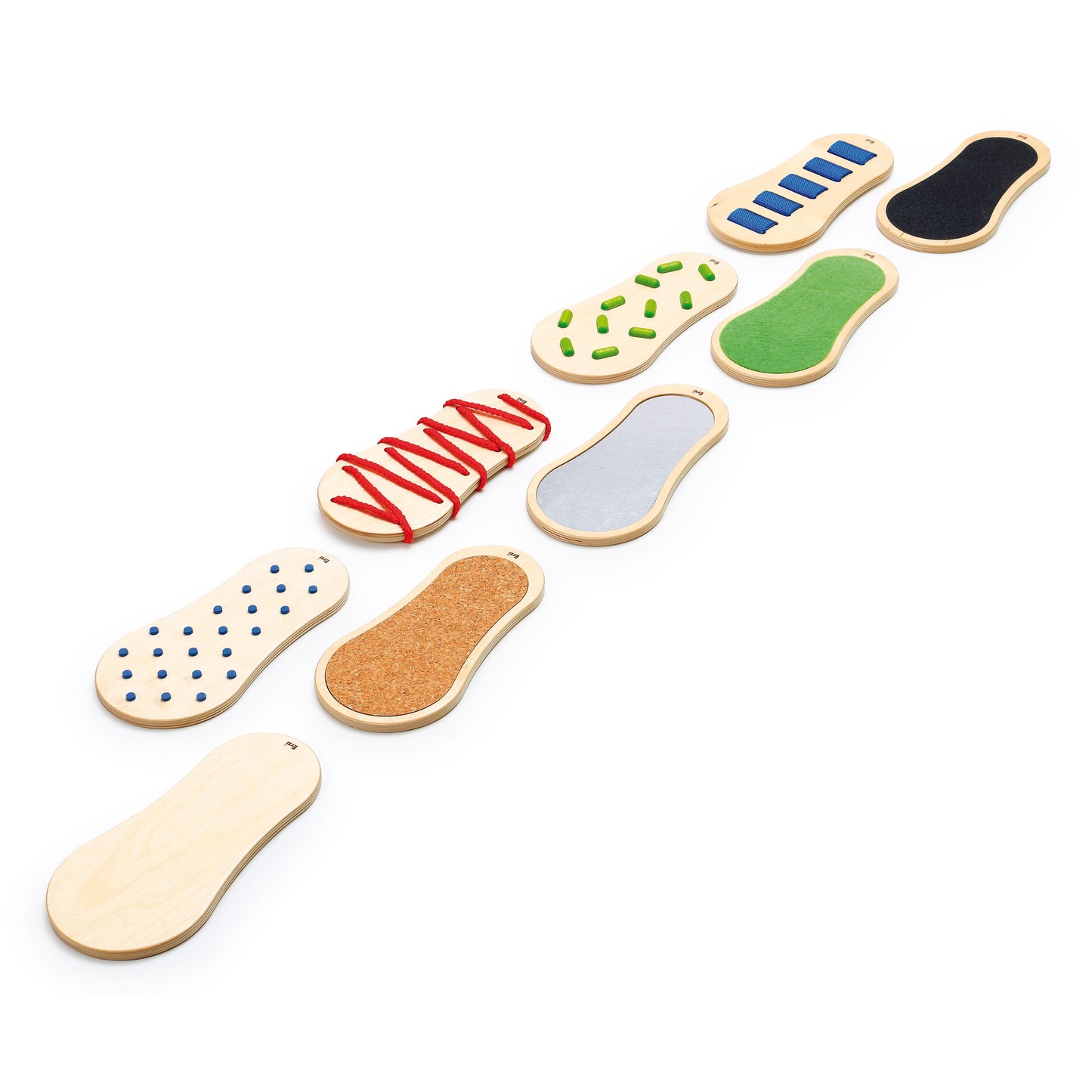Step-by-step the SensoPath product line guides the user through the world of sensory and motor functions. A balancing and wobbling act is the result, combined with a feeling of poise, a comparison of one’s own physical abilities and a great deal more. One foot is deliberately placed in front of the other, stimulating a depth-sensory effect to weak feet. Resorting to a variety of different materials, surfaces and motor challenges serves to train bodily perceptions. An adult-sized foot (size 43/9) is taken as a basis, this making the SensoPath product suitable for all age groups. All materials used are sweat- and saliva-proof, and are tested for toxics or harmful substances. SensoPath units are ideal foot trainers for games, sports and therapeutic applications. Size highest foot: 28 x 14 x 2,26 cm