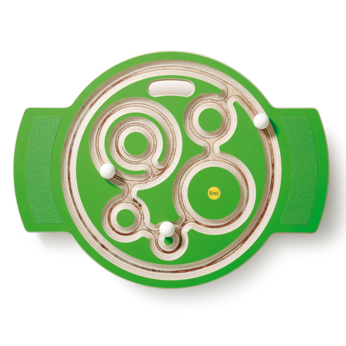 Erzi trackboards are fun to play with and combine enjoyment with bodily exercise. The balancing disc provides children and adults with an anti-slip tread support whilst they direct the balls along the track to the finish. The flexible anti-slip seesaw base fitted to the underside of the trackboard is designed as a corresponding means of safety for this balancing game. The integrated carrying handle also serves as a ball mount.