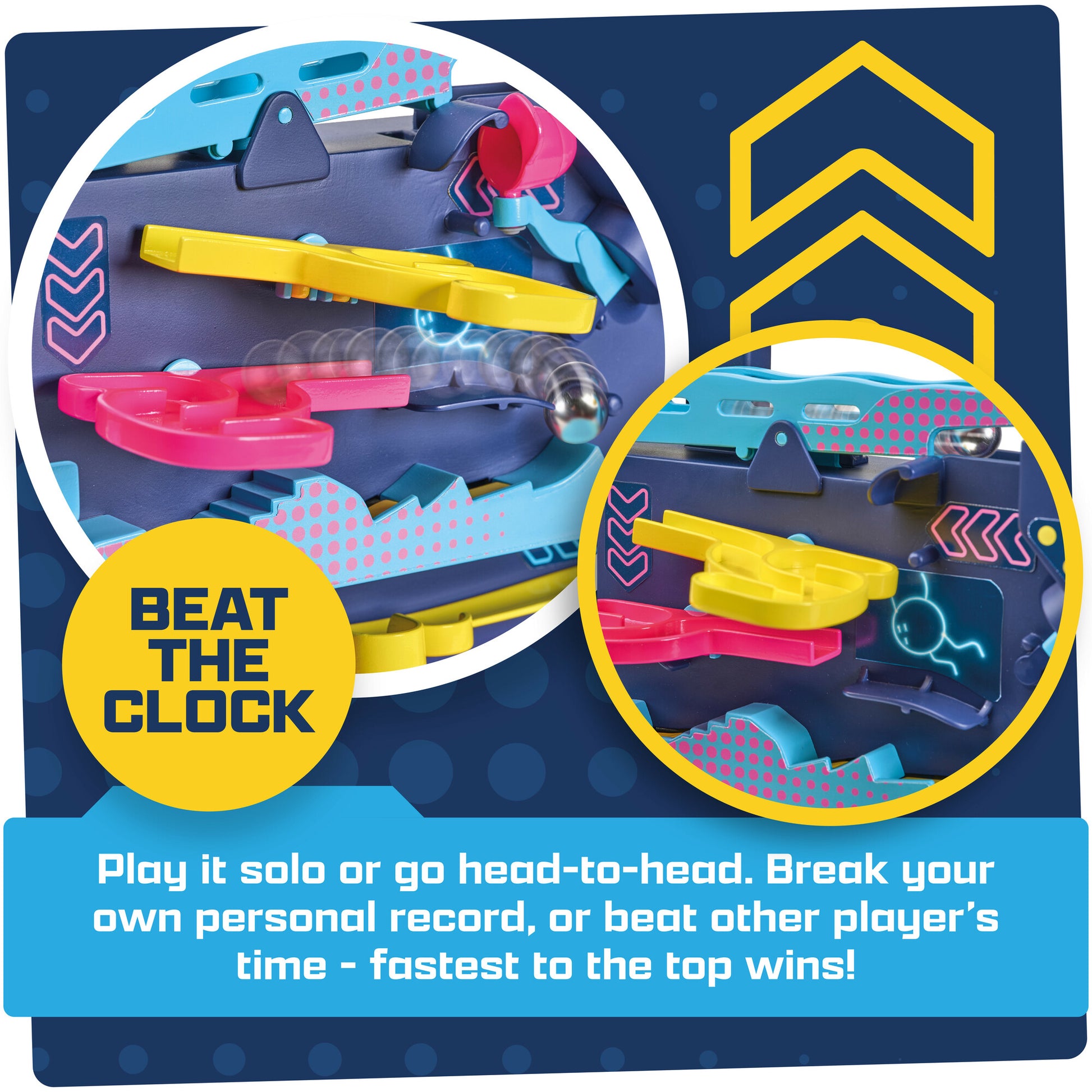 Roll up Screwball Scramble fans! That’s just what you’ll do in this gravity-defying challenge that swaps the horizontal for the vertical. Starting right at the bottom, you need to make your marble clamber up the frame, tackling over a dozen pieces of apparatus, visiting some of them twice! On the base are just three controls you’ll jab, twist and tease to inch your way up the Corkscrew, hopscotch over the Bridge, one step at a time, and snake your way up the Ladder, skipping up the rungs, one by one. If you haven’t dropped the ball yet, you’ll sweep over the Swinging Passage, hop through Hoops, down a Shute, then back up to the Throwing Cup. Catapult that pesky marble over to a pair of floating Mazes, tip-toe over the Saw Blade Bridge and catch your breath as you soar to the top using the Lift. There are still Steps to scale, a Cloud to reach for, plus a teetering Top Rail. Drop down the Funnel for that final Screwball magic as you ding the finish bell below! If you loved Screwball Scramble I and II (sold separately), you’ll be itching to Level Up and reach for the top. As you lunge and stretch up the cliff edge, timing and dexterity are tops as you mix patience with speed and cat-like reactions. Play solo to set a time and then beat it, or go head-to-head with family and friends. Fastest up the maze wins. Suitable for 1-4 players aged 5 and over. No batteries required. Some light assembly necessary