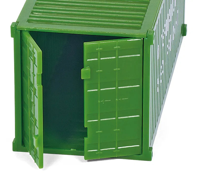 Products of all types are transported across the world using shipping containers. By road, the containers are transported using trucks with special semi-trailers. For great playroom enjoyment, SIKU is implementing this theme with the new Mercedes-Actros transport combination with 2 containers. The length of the variable semi-trailer can be modified, according to whether it is loaded with one or two containers. If only one container is transported, the rear part of the semi-trailer frame can be pushed in so that the container can be located in the middle of the semi-trailer, for optimum weight distribution. The containers are equipped with movable doors which allow convenient loading and unloading.