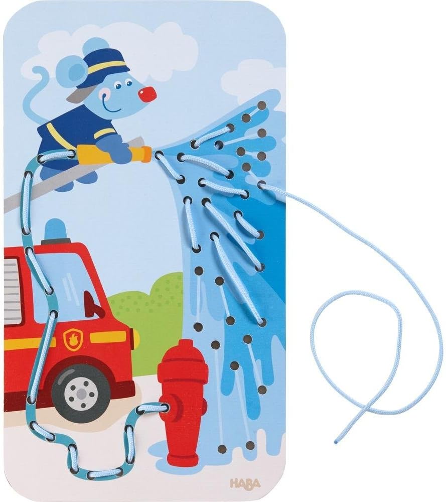 Who can help the firefighter mouse to put out the fire? Concentration and a little dexterity are required to thread the threading cord through the holes.