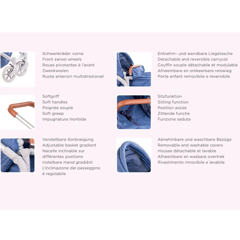 Gotz Dolls Doll Pram 4-wheel, 2 in 1, Denim & Spots