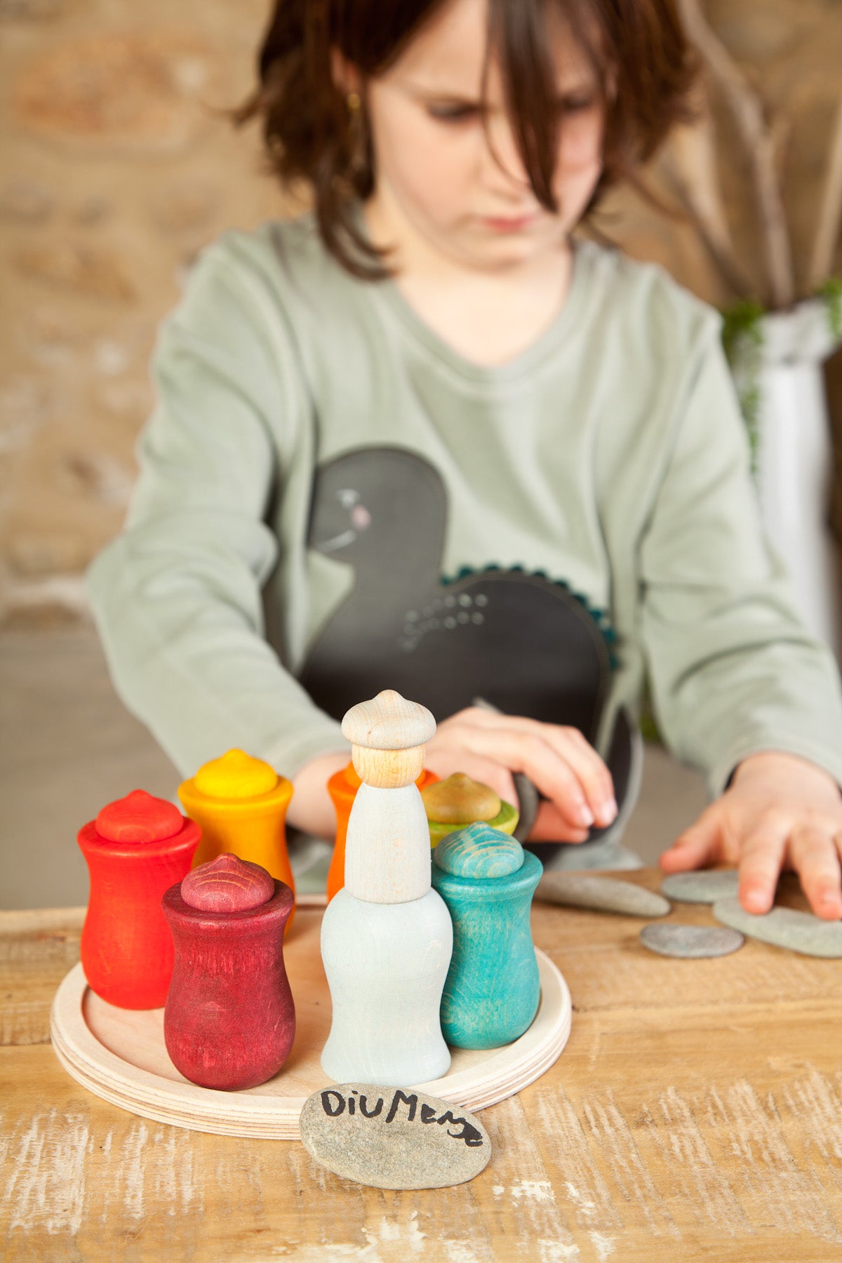 Catalonia based Joguines Grapat was founded by husband and wife team Casiana & Jordi Grapat who were inspired by watching their young daughter play freely with very few, simple toys that she had at her disposal. They realised that when children are given freedom to imagine, they will enter a world of their own creation. Inspired by this experience with their daughter, they started to create wooden toys such as the Nins® (Catalan for 'children'), a beautiful range of traditional Waldorf toy peg dolls, that allow children to play freely without rules or structure, unhindered by pre-determined ideas or games.