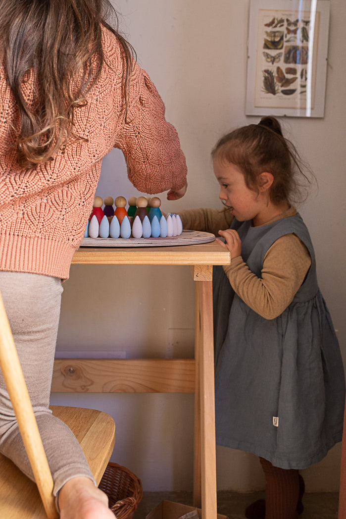 Catalonia based Joguines Grapat was founded by husband and wife team Casiana & Jordi Grapat who were inspired by watching their young daughter play freely with very few, simple toys that she had at her disposal. They realised that when children are given freedom to imagine, they will enter a world of their own creation. Inspired by this experience with their daughter, they started to create wooden toys such as the Nins® (Catalan for 'children'), a beautiful range of traditional Waldorf toy peg dolls, that allow children to play freely without rules or structure, unhindered by pre-determined ideas or games.