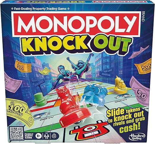 • UP AND ACTIVE FAMILY PARTY GAME: Slide tokens to knock out rivals and grab cash in the Monopoly Knockout game! It's all fans love about the Monopoly game in a lively party game that gets the family moving.
