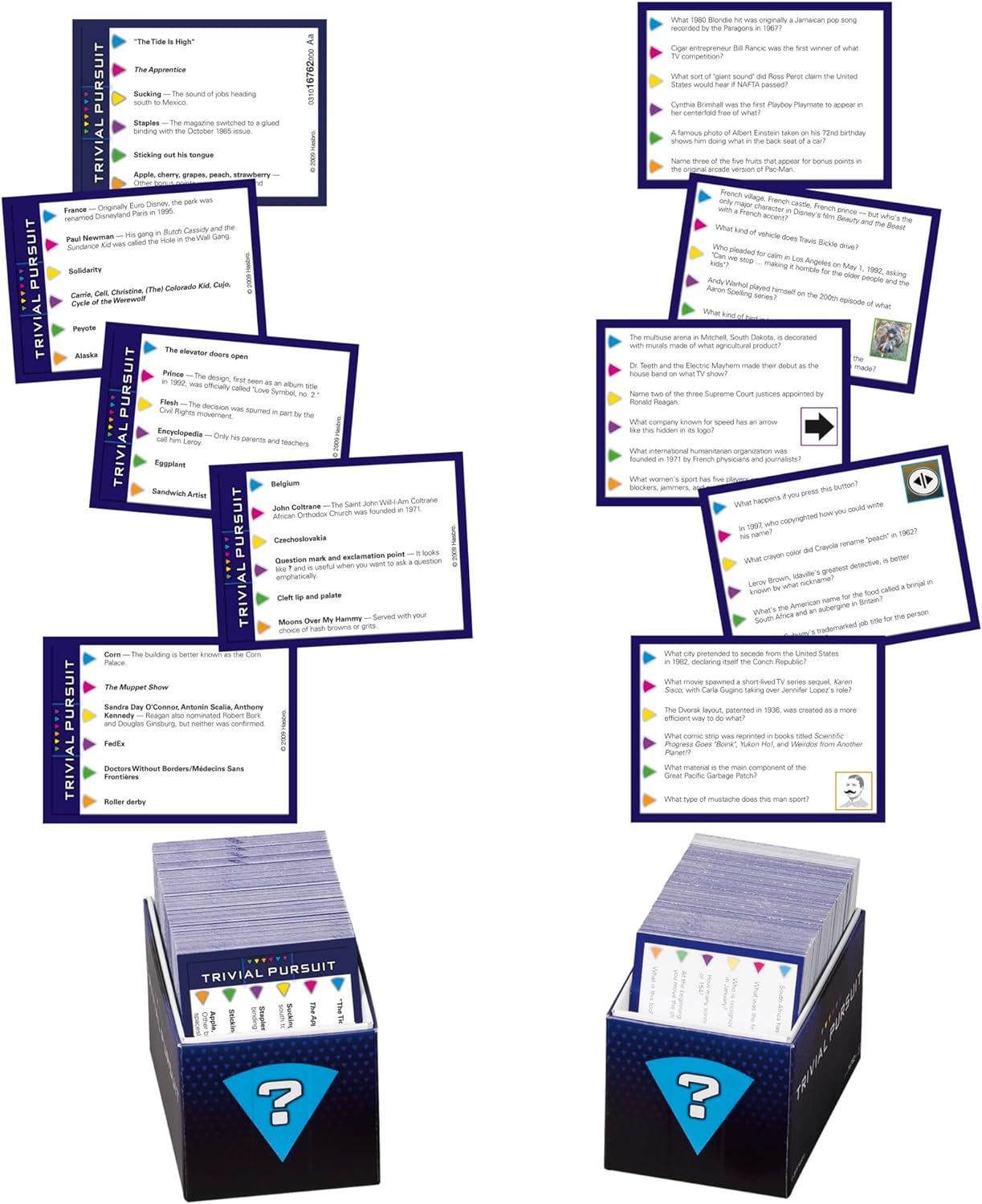 With 3,000 intriguing, challenging, and sometimes humorous questions, the Trivial Pursuit Master Edition game lets trivia buffs show off their smarts. In addition to who, what, and when questions, now you could be asked to look at an image on the card, pick the right answer from multiple choices, or choose the one that does not belong. So get ready, the race is on to find the master of Trivial Pursuit! Could it be you?