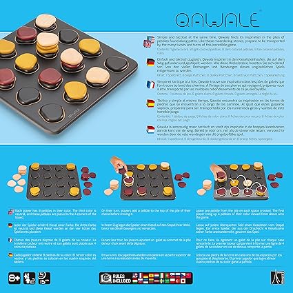 Simple and tactical at the same time, Qawale finds its inspiration in the piles of pebbles found along paths. Like these meandering stones, prepare to be transported by the many twists and turns of this incredible game.