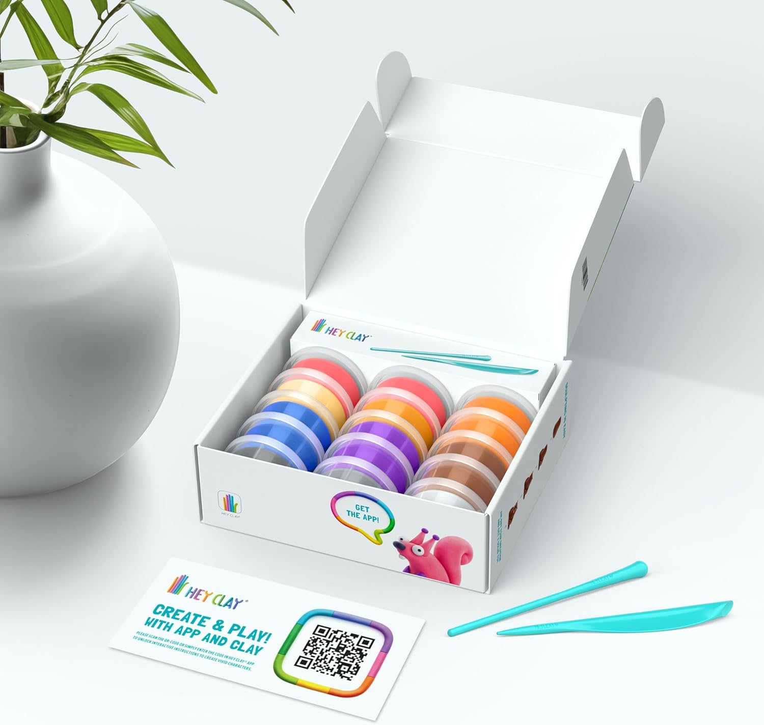 The Hey Clay set includes 15 containers with soft and gentle weight two tools for easy modeling and app access code for purchased character series. The colours shown on the package allow you to create all 6 characters in the set. A certain amount of weight remains, you can use it to realize your own creative ideas. The mass dries in the air within 24 hours.