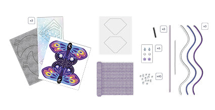 Abracadabra! This creative kit allows you to make 3 witches’ wands. It includes a silver glitter pre-cut sheet, 1 holographic pre-cut sheet, 1 printed pre-cut sheet, 1 transparent pre-cut sheet, purple tulle, 45 star and moon sequins, 6 self- adhesive sequins, 1 black chenille thread, 3 tinted wooden wands, 1 silver sequin ribbon, 2 satin ribbons (blue and purple), 1 elastic thread, 3 self-adhesive foam squares and 1 booklet with instructions and designs. This activity helps develop creativity and fine motor skills and is ideal for children aged 7 and over.