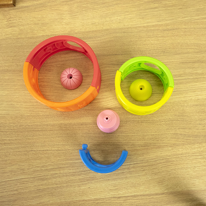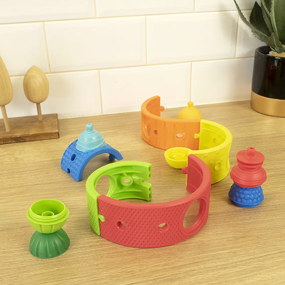This set includes arches and beads that can be stacked or attached in a huge variety of different configurations. Clip or screw them together to create all sorts of colourful shapes!