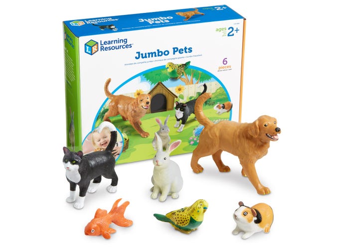 Children gain a better understanding of familiar household companions with this set of realistically detailed plastic toy pets. Ideal for imaginative play, these durable plastic animals are perfectly sized for little hands. Set includes dog, cat, rabbit, guinea pig, fish and bird. Largest animal (dog) measures 20cm x 15cm H. Comes in sturdy cardboard box for easy storage. Suitable for ages 2+