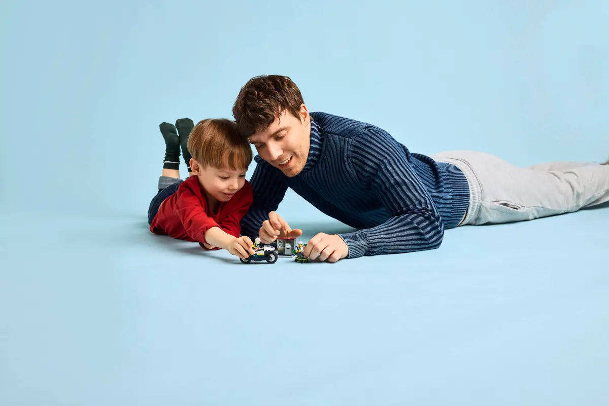 - Police motorbike toy for ages 4 and up – Introduce your everyday hero to a world of imaginative play with this LEGO® City Police Motorcycle Chase playset
