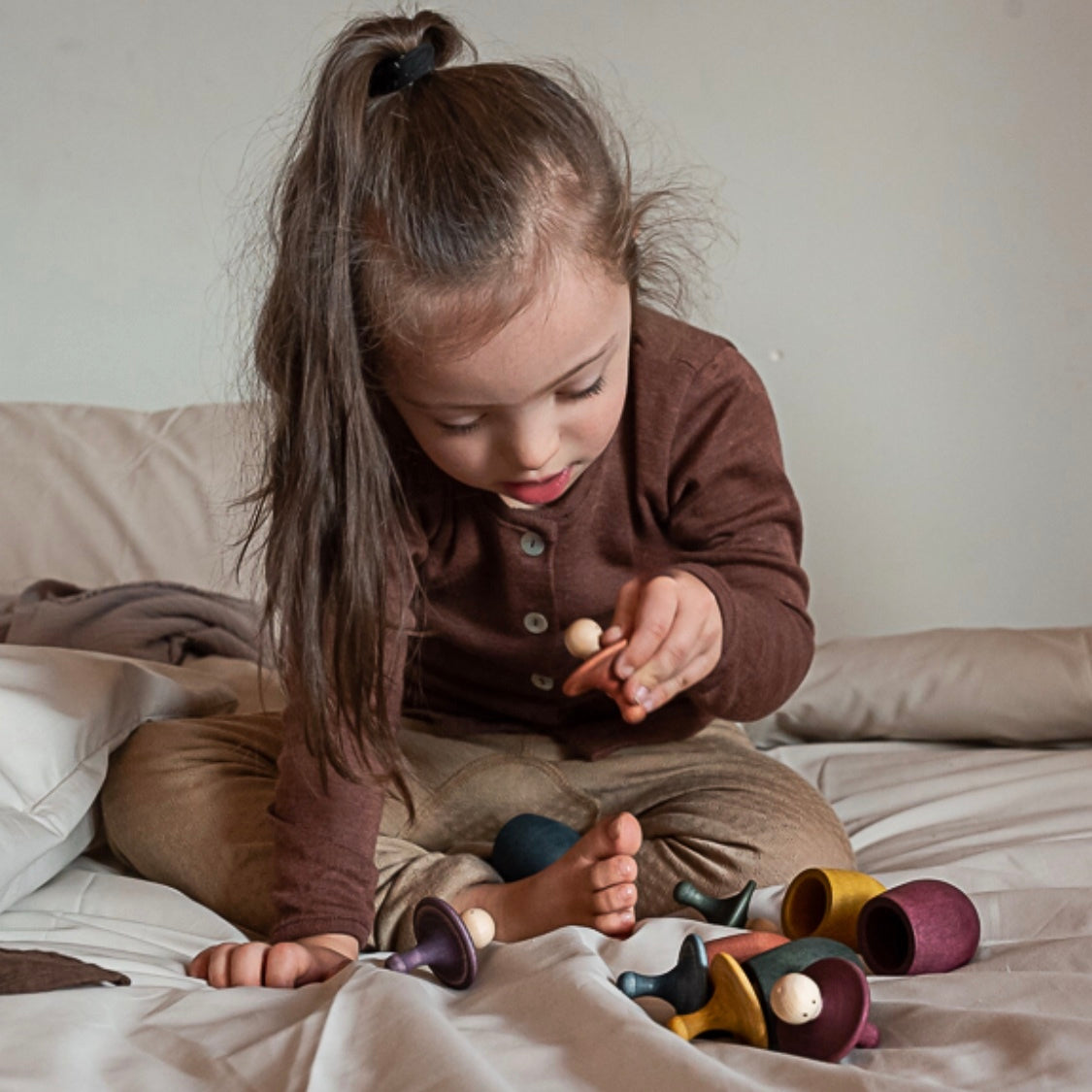 Catalonia based Joguines Grapat was founded by husband and wife team Casiana & Jordi Grapat who were inspired by watching their young daughter play freely with very few, simple toys that she had at her disposal. They realised that when children are given freedom to imagine, they will enter a world of their own creation. Inspired by this experience with their daughter, they started to create wooden toys such as the Nins® (Catalan for 'children'), a beautiful range of traditional Waldorf toy peg dolls, that allow children to play freely without rules or structure, unhindered by pre-determined ideas or games.