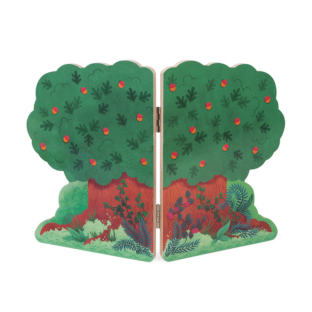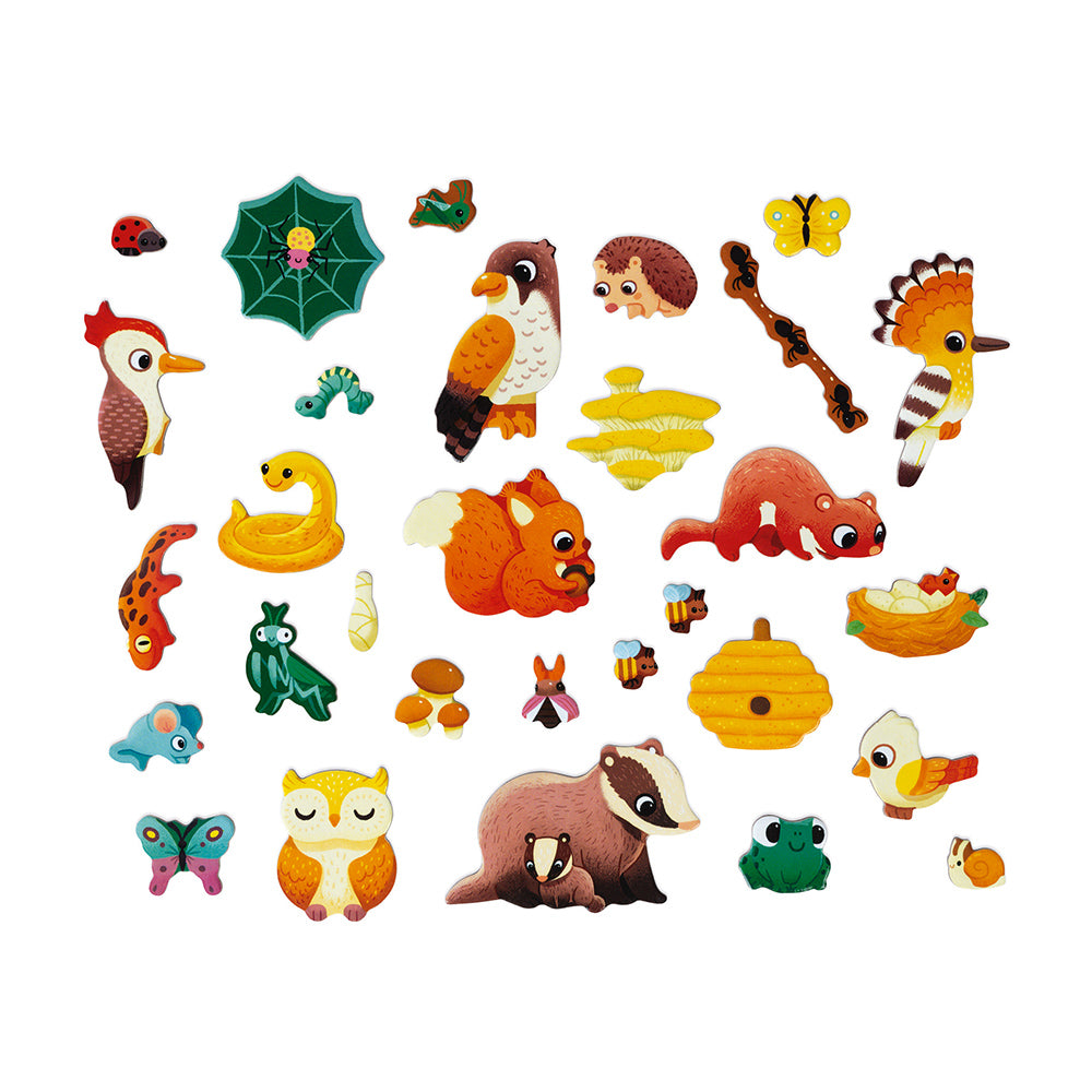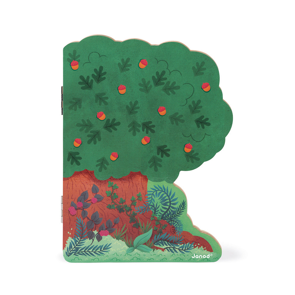 For children aged 3-6 years. Wooden toy. Portable magnetic tree. Inside, children will explore a whole universe with animals and plants that they can bring to life as they please to match the stories they tell. An ideal way to learn the names of forest animals. Thirty magnets. Magnetic closure. Closed standard box.