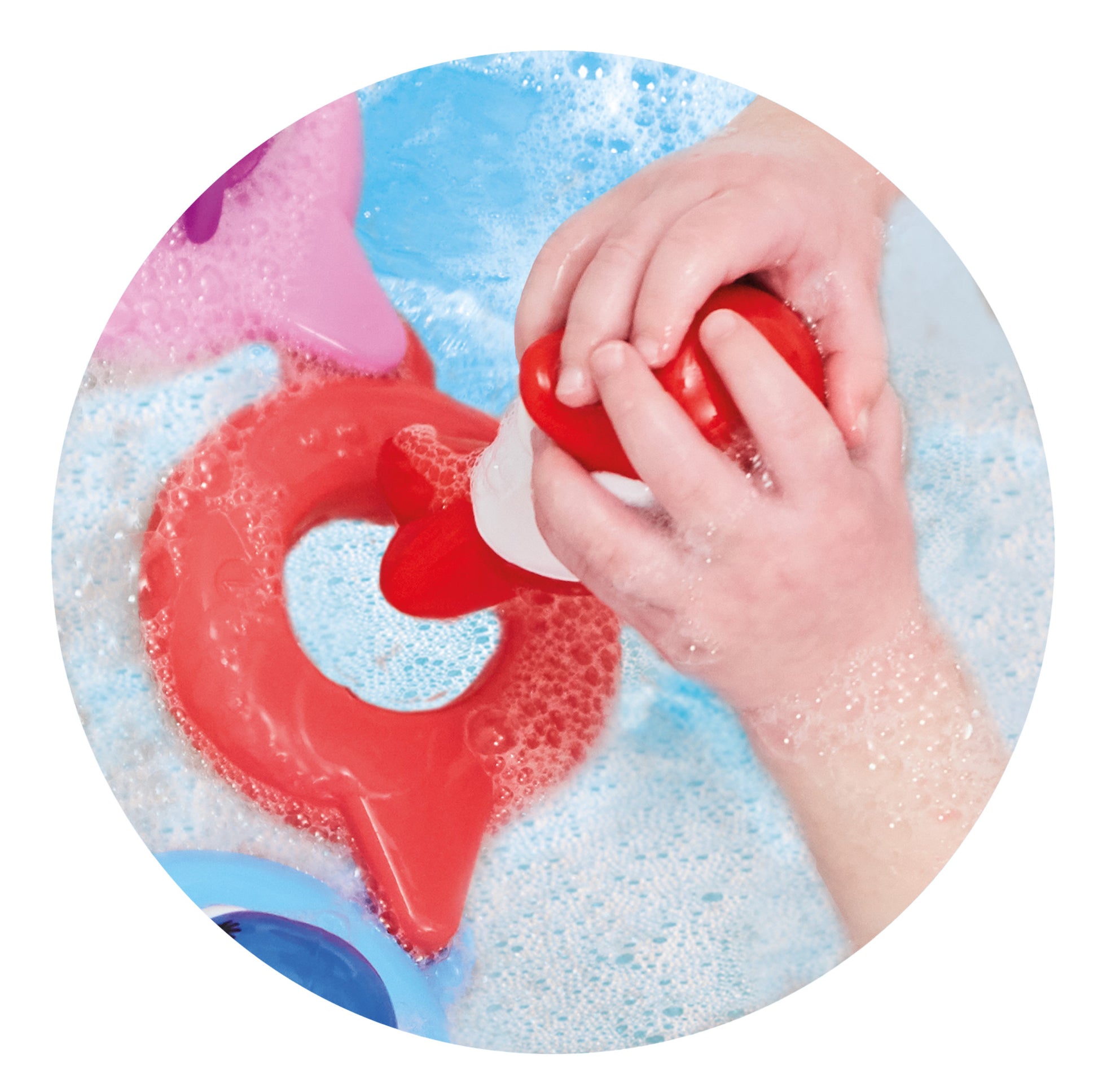 - Bright, fun and appealing colourful dolphin bath toy
