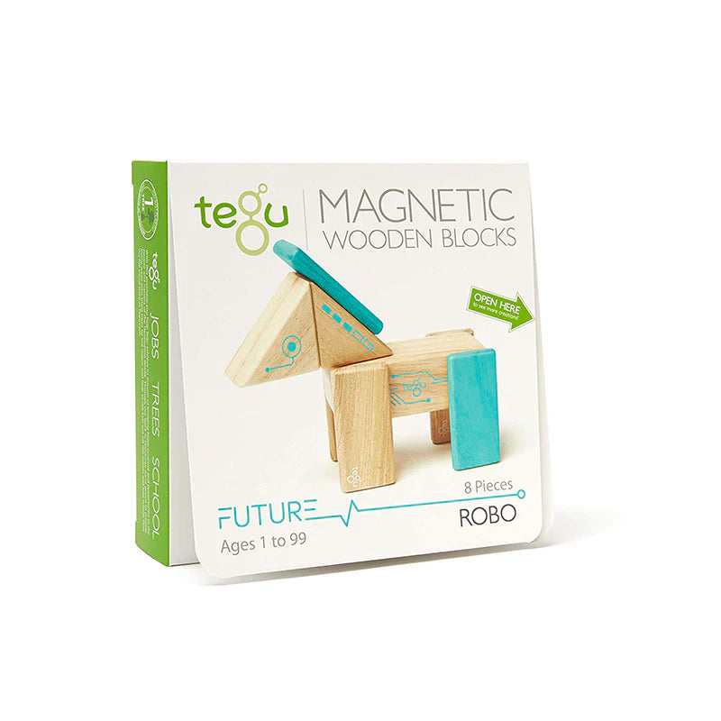 Fast forward your play into the next millennium with Tegu's FUTURE sets! The FUTURE Collection is Tegu’s first “theme-based” sets, an exciting new frontier for the multiple award-winning magnetic wooden blocks. This innovative line includes 14 new, original shapes and uniquely combines print graphics with beautiful hardwoods. The combination of whimsical graphics paired with contextualized shapes bring personality to the play experience and helps seed the imagination.