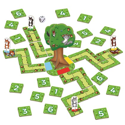 Players take it in turns to roll the dice, and pick up cards with the matching number, before adding them to their path. If a player turns over a squirrel picnic card, the matching coloured squirrel has collected enough acorns and their adventure ends. Once all players have ended their path, they count up the acorns on their path - the player with the most acorns is the winner!