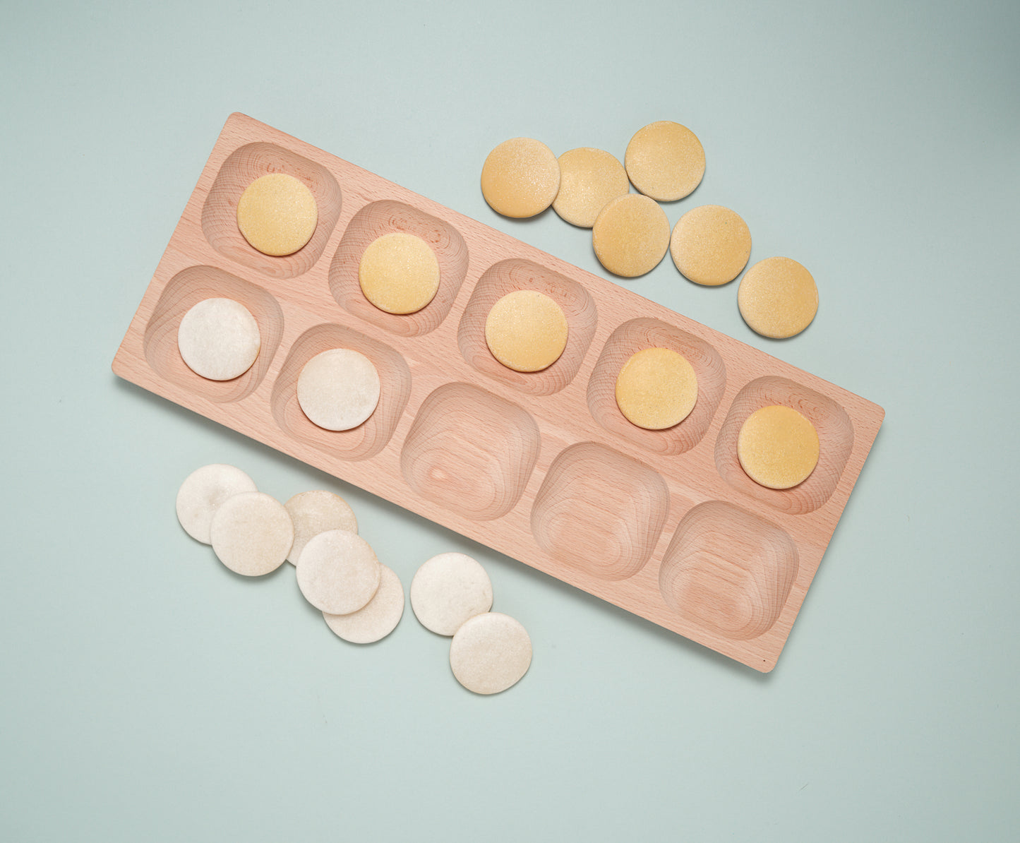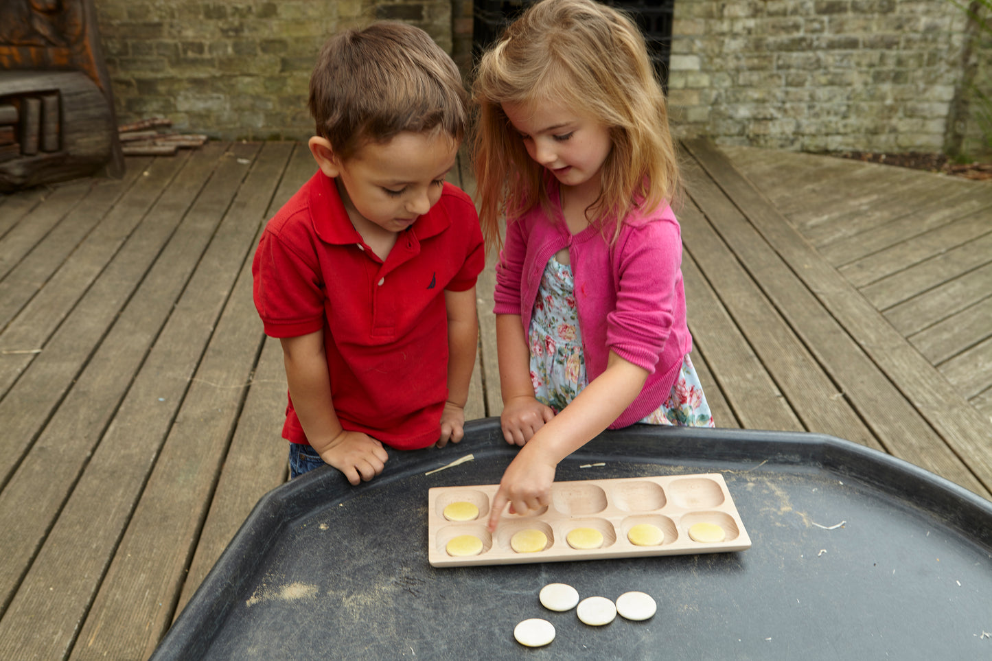 This inviting set of 20 double-sided stones is ideal for counting, pattern making, number bonds and sorting, among other maths concepts. These durable counters, made from a stone and resin mix, can be used both indoors and outside, and in water and sand. Their tactile nature gives them a lovely feel in the hand and encourages exploration and interaction. They are ideal for use with 10-Frame trays and sorting trays, to support sequencing activities and an understanding of number arrays. Contains 20 stones measuring 45mm in diameter and 10mm at the thickest point. Age 2+.