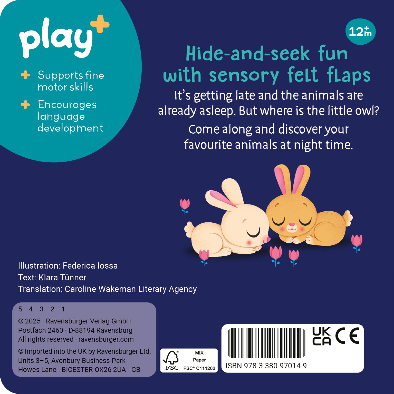 Where is the little owl hiding? Are they by the pond, with the swan or hidden in the leaves on the forest floor? This first fabric flap book invites children aged 12 months and up to explore and discover! Each of the five double pages features a large fabric flap, perfect for little hands to grab and lift. The sturdy materials and compact size make it easy for even the smallest hands to join in the fun. Behind the flaps, children will find sleepy animals like a swan chick, a ladybird, a hedgehog, and some rabbits. And where’s the little owl? She’s cuddled up with her mum as the night gently fades. This book supports fine motor skill development step by step and fits perfectly in a bag—great for on-the-go adventures!