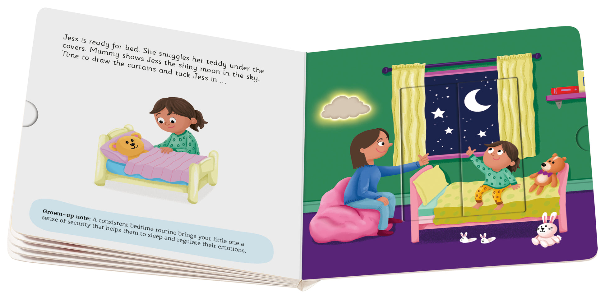 It’s the end of a busy day and time for bed. But there are a few things to do to get ready. Learn about bedtime routines together in Me and My Day…Bedtime – as you read, find out about what the children in the book do before they go to bed, from story time to brushing teeth and more. There are playful sliders on each page to add interactive fun. Me and My Day…Bedtime includes some handy parental tips too.