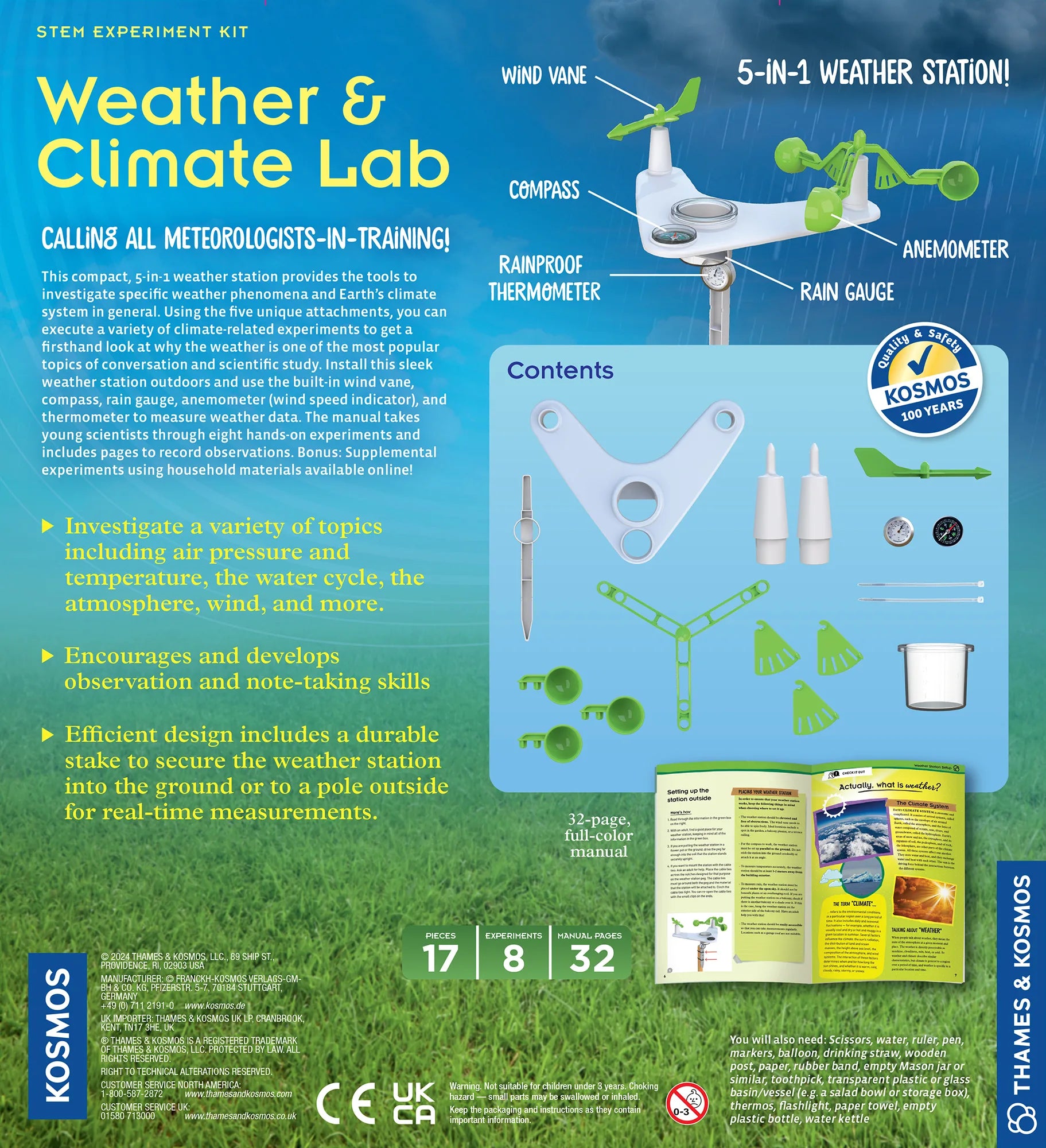 Calling all meteorologists-in-training! This compact, 5-in-1 weather station provides the tools to investigate specific weather phenomena and Earth’s climate system in general. Using the five unique attachments, you can execute a variety of climate-related experiments to get a firsthand look at why the weather is one of the most popular topics of conversation and scientific study.