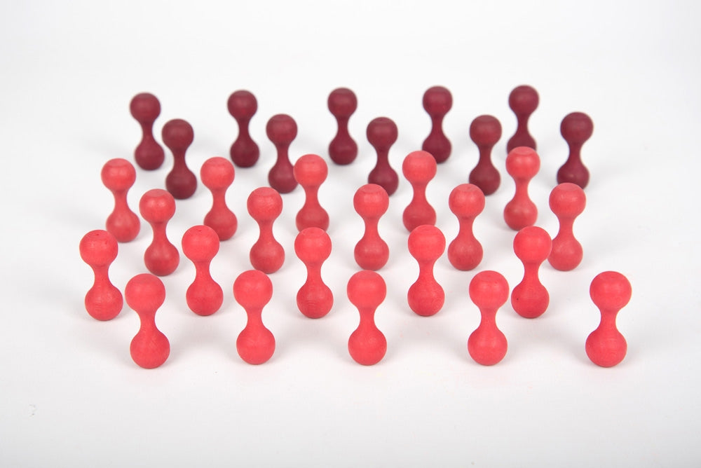 - Set includes: 30 wooden toggles in 3 shades of red.