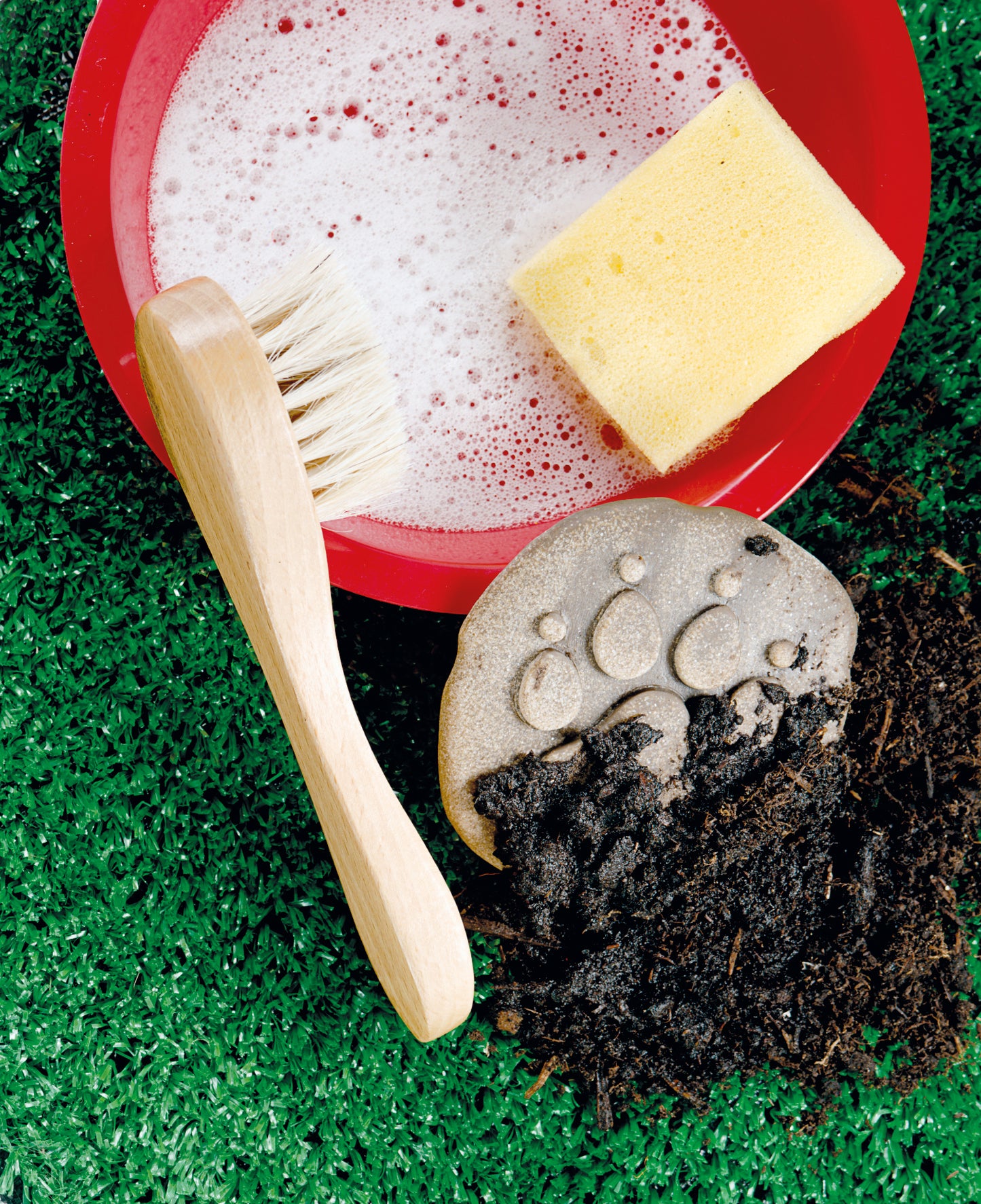 There are always plenty of animals to see down on the farm, but sometimes you need to follow their footprints to find them. Each double-sided stone has the raised footprint of an animal on one side and an image of the animal indented into the other side. Press the footprint into sand, mud or soil and create a trail for children to follow. What animal might they find at the end: cow, horse, sheep, pig, dog, cat, chicken or duck? When they find the animals, how might they sort them? They can record their findings by taking rubbings, making impressions in play dough, creating prints using paints and discovering what else they know or can find out about each animal. When the work is done, the children can give the footprints a good clean with soap and water, before a new farmyard adventure tomorrow. Made from a unique stone mix the footprints are robust enough to be used throughout an early years setting including outdoors. Contains eight double-sided stones (70 �80mm). Age 2+.