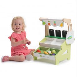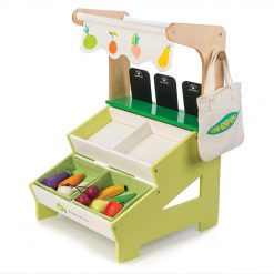 Start your business with this vibrant colored market stall. Built with sturdy and durable wood, the market stall has all the fresh produce a real market has to offer. There is also a pretty fabric tote bag for your customers to take the fresh fruits home. Helps to develop social skills and promotes imaginative and creative role play.