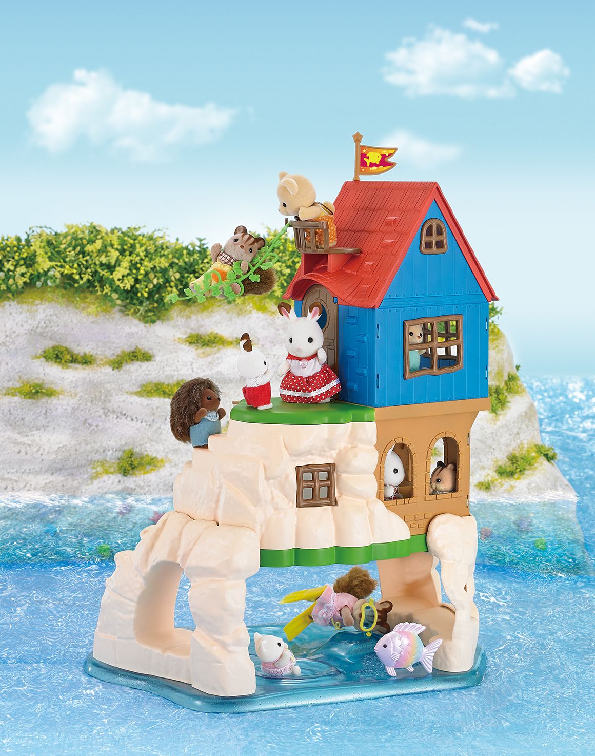 The Secret Island Playhouse is where Sylvanians go to swim, play, and have fun! This set is full of wonderful features including 2 pools, caves, diving board, swim gear, fish, vine swing, 2 rooms with furniture and more! The Secret Island Playhouse is a wonderful place for your Sylvanians to enjoy their seaside adventures. Figures sold separately.