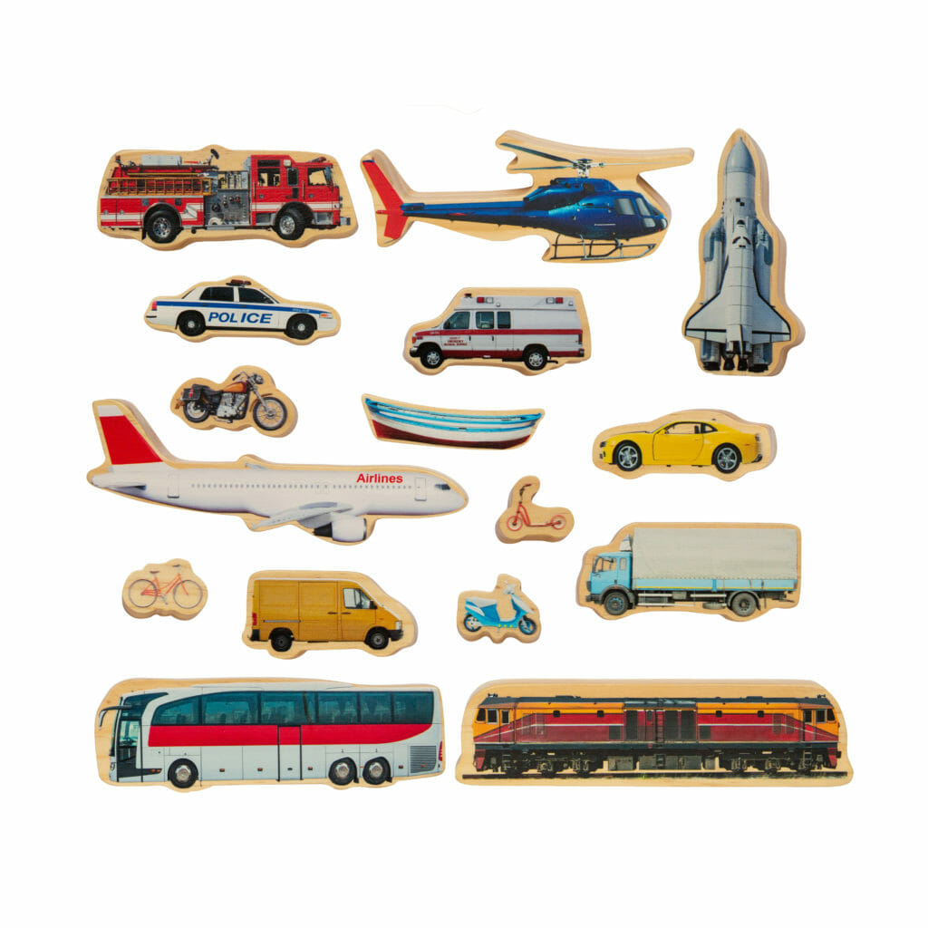 Featuring all the favourite methods of transport, this set will have children fully engrossed in imaginative play while they drive, fly and sail around the room. Featuring everything from scooters to rockets and fire engines to helicopters just to name a few. A good starter for conversation on how all these different forms of transport fit into our community in different roles and jobs. This set inspires children’s creativity and imagination which promotes the development of language and communication skills while encouraging the sense of accomplishment as well as their social and emotional development. Each illustrated piece are heat transfer printed so they’ll last through years of play.