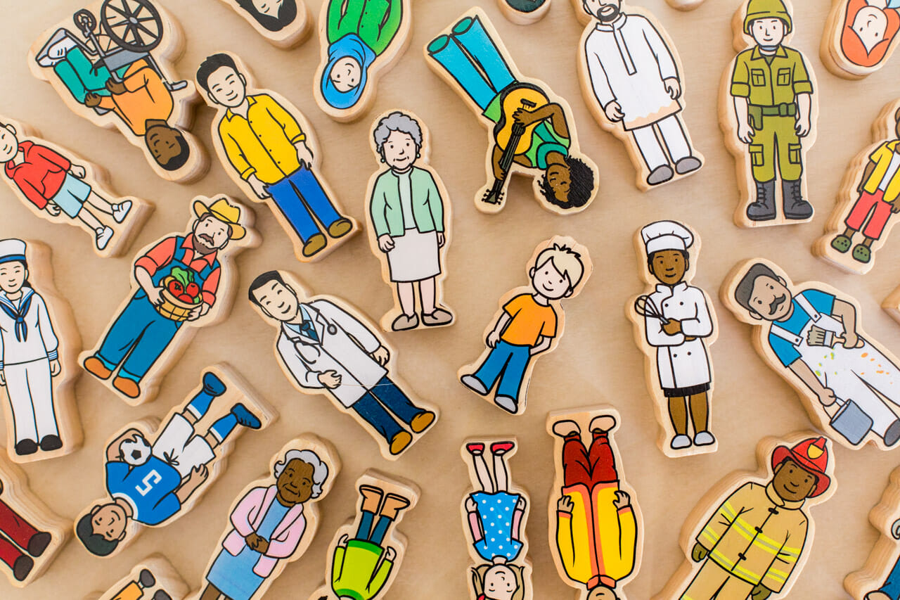 Great for role-playing and storytelling, this 42 piece Wooden Village People set represents a multicultural community that comprises of a diverse range of families from different ages, gender and occupations. It is a fantastic toy set for pretend play as well as opening up conversations about diversity, equality and belonging. It can also assist children to develop a sense of identity by understanding different cultures, languages, families and appearances while they learn about their community as well as themselves through play. Images are printed using non-toxic heat transfer technology and sealed with a clear matt varnish to ensure they last for years to come!