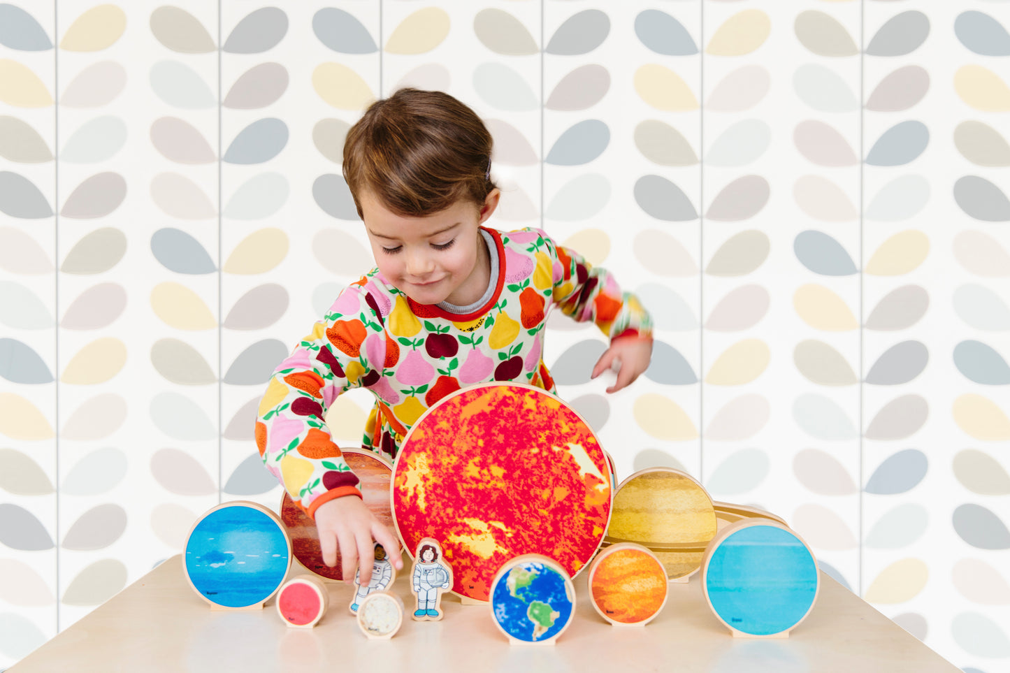 Time to explore our universe by taking a trip into space. This 12 piece solar system comes with all the planets in our solar system, both a male and female astronaut and a rocket. Perfect for imaginative play as well as a great conversation starter to introduce interesting facts about our Solar System. This is an excellent toy for children to promote social and imaginative play while encouraging them to feel positive and confident while they learn through play. The generously sized pieces have been printed using non-toxic heat transfer technology to ensure longevity of the artwork.