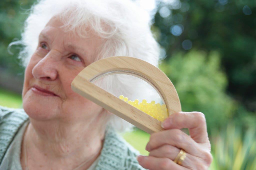 - 16 large rubberwood blocks containing beads, transparent acrylic, coloured sand and water/glitter filled pockets in 4 different shapes (square, rectangle, triangle and semicircle).
