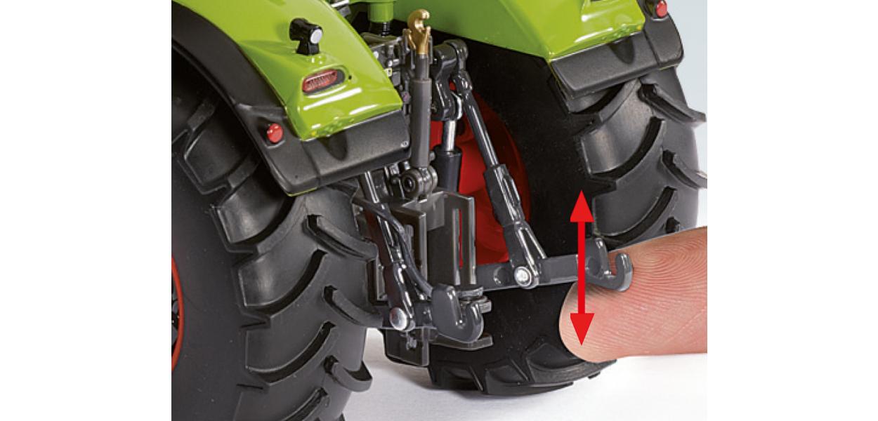 - To make the model even more realistic, the swing axle can be controlled with the steering wheel. Found on the rear is the coupling for connecting the cardan shaft.