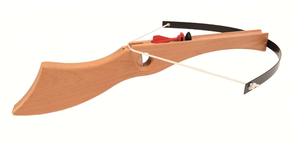 The Willhelm Tell crossbow is made of beech wood and has a spring steel bow. There are also three suction arrows in blue and red. This allows knights, royal children or fighters from the magical forest to optimally prepare for a fight.