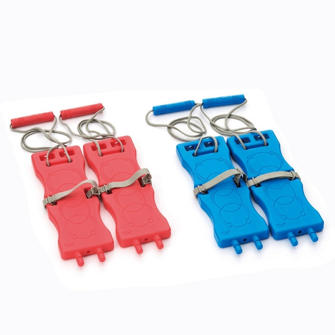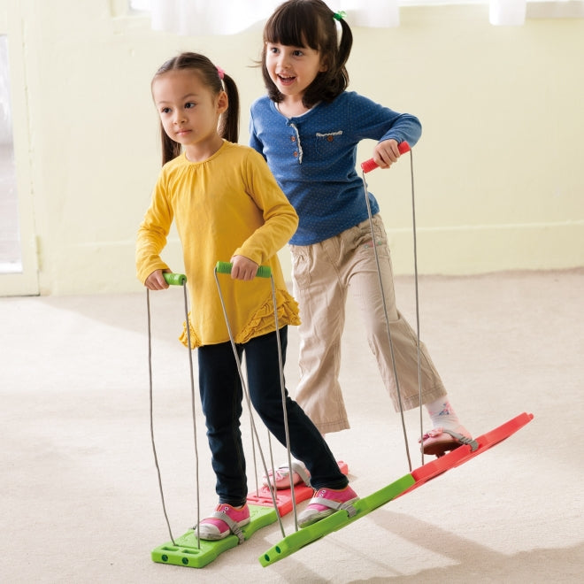 1, 2, 1, 2 ... left and right everybody all together! Team Walker promotes teamwork. Users need to cooperate for moving together. Adjustable rubber strap fits all feet sizes. Each piece can be firmly connected and locked to another one! Unique design to improve individual motion development. Flexible and highly portable activity set. Promote teamwork. Suitable for schools and nurseries, both indoors and outdoors. Content: 4 pairs (8 x skies). Material: PE Measurements: 39.5 x 12.5 x 2.5 cm Age restriction: 3 years & up
