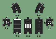 - 12 curves, 8 straights, 2 intersections and 2 roundabouts.